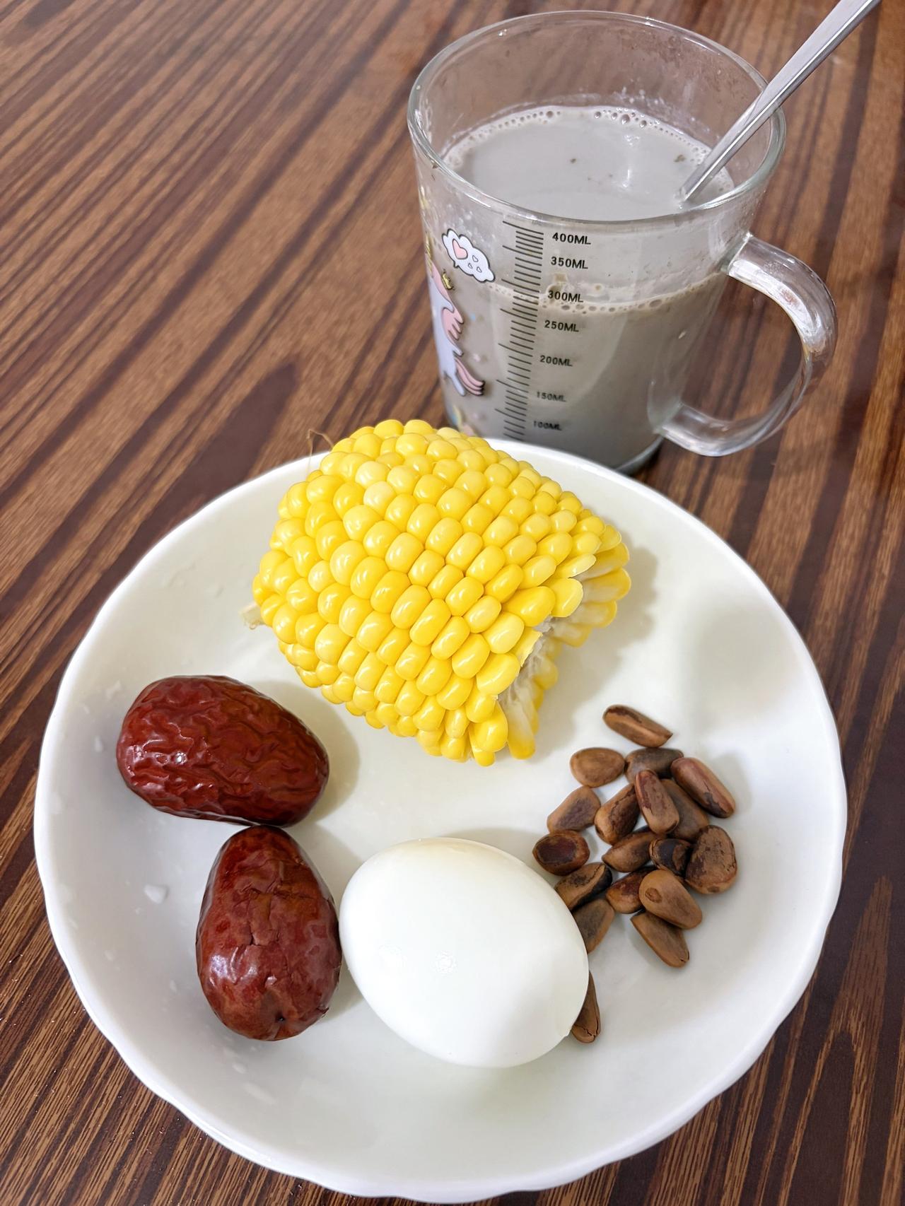 今日早餐:鸡蛋+黑豆浆+大枣+松子+玉米 姐妹们,国庆的债还完了吗?