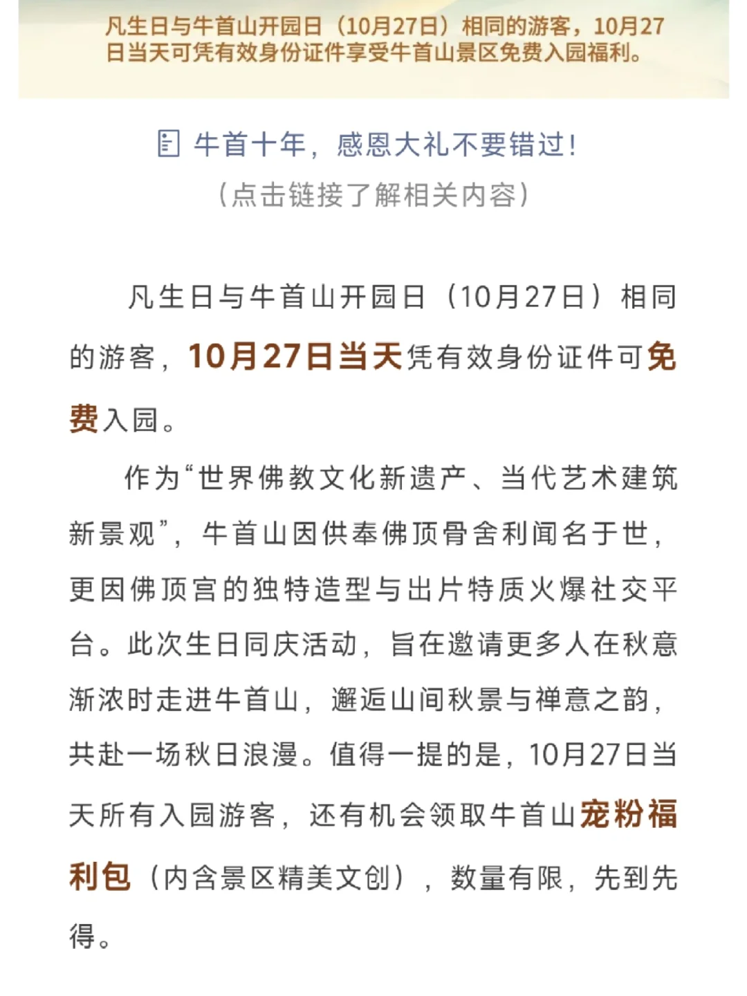 👧🏻活动对象:生日与牛首山开园日(10月27日)相同的游客,凭身份证可免费入园