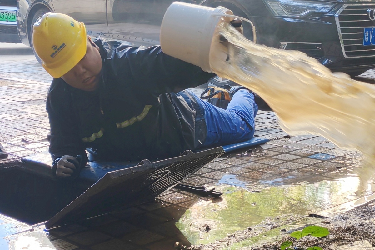 抢修现场,因水位较浅导致抽水泵无法作业,“不能等!居民还等着用水!”张王胜当即决定人工舀水作业。表井空间狭小,他俯身于井口旁,一次次将桶深入水中舀起、倒掉,水很快浸湿了他的工装。舀水间隙,他在空间受限的情况下精准操作工具排查故障,凭借娴熟的技术和“急居民所急”的劲头,经过近一个小时紧张作业,居民用水恢复正常。