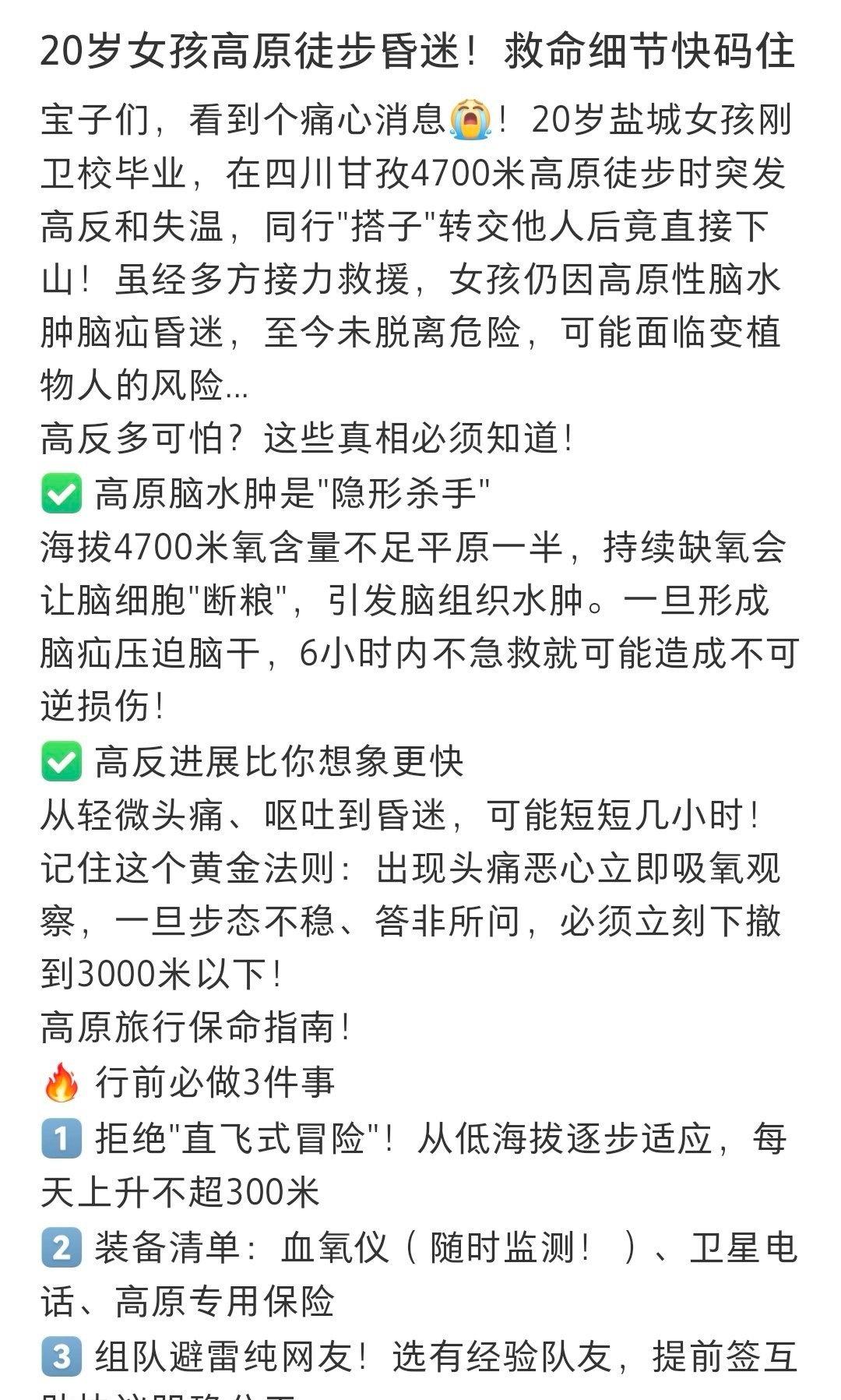 高反确实很危险!不要拿自己的生命做赌注!我一直想去西藏,却始终对自己身体状况不敢