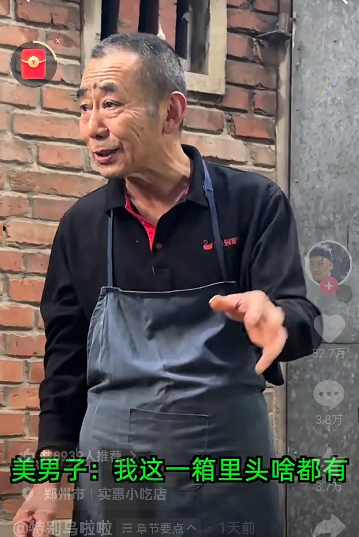 郑州大爷的炒八掺火了! 被美食博主呜啦啦打卡后,大爷的小摊直接爆火,每天排队打卡