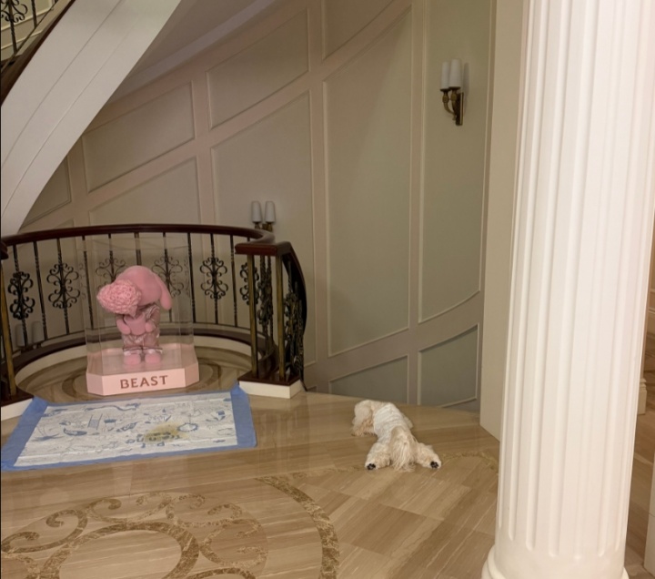 富家千金休闲的一天!JKL女友五五晒照:鲜花前放小狗尿垫略显奇怪