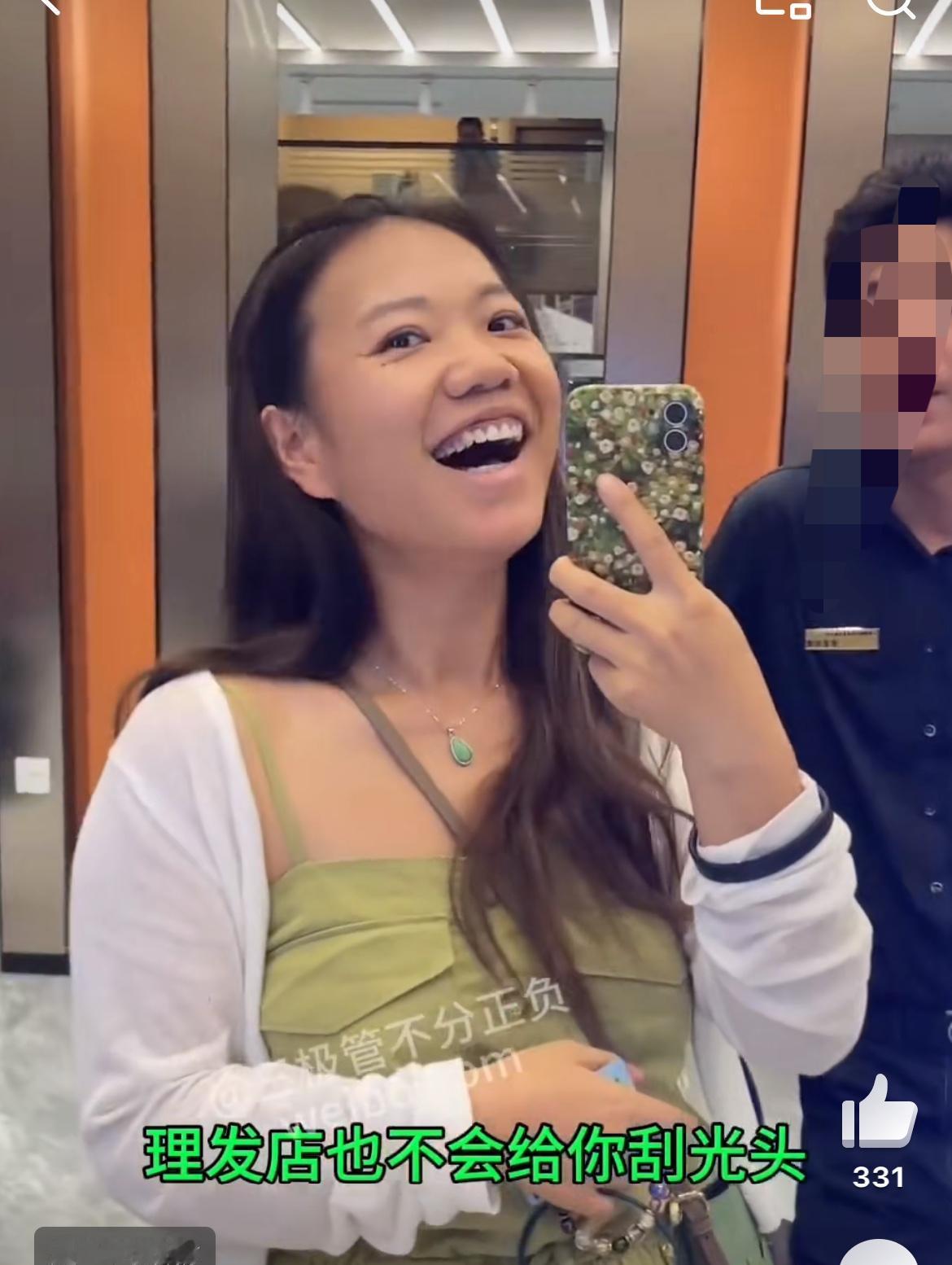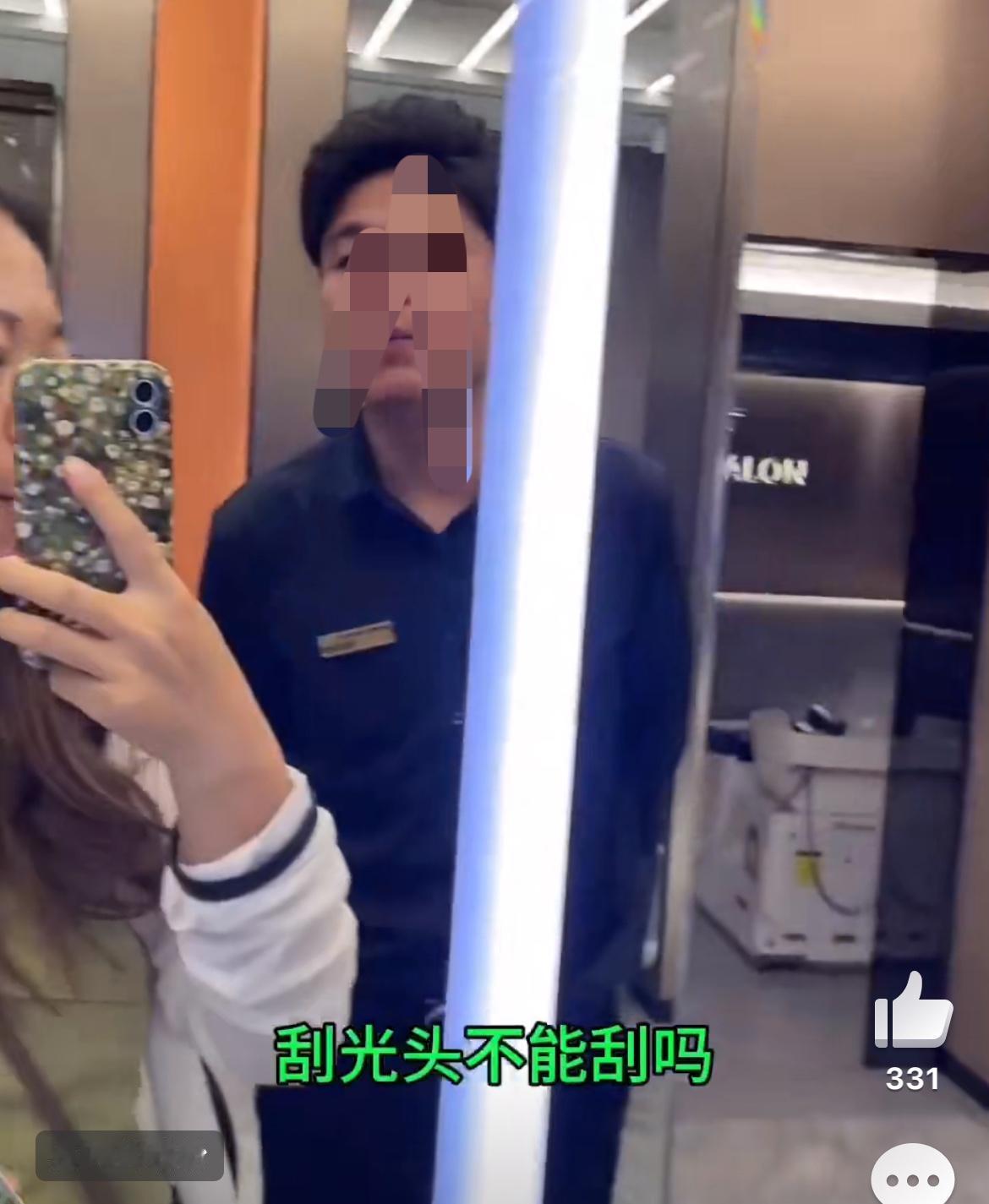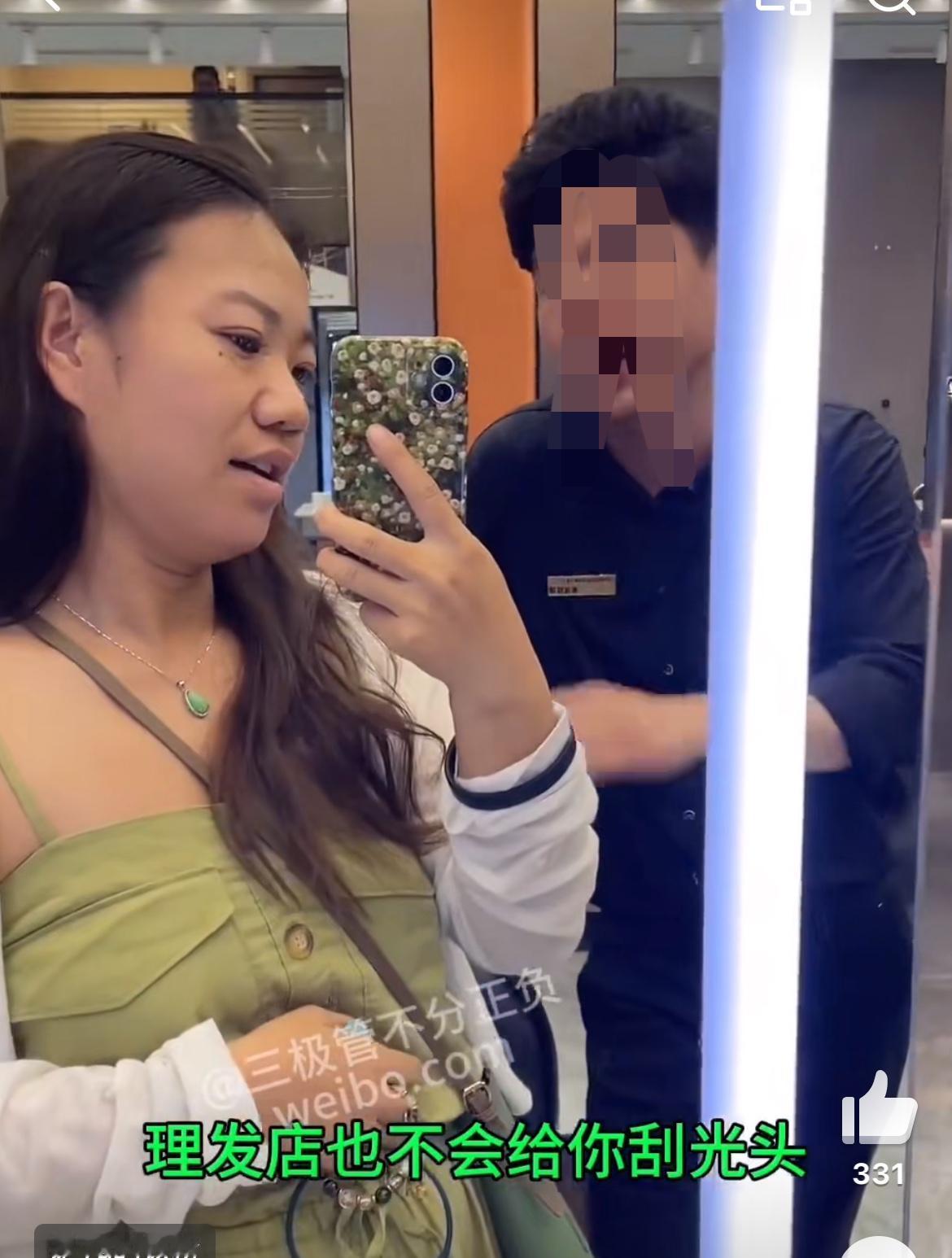 杭州美女理发店要剃光头,理发店帅哥拒绝,说担心影响店里的声誉。美女说,这是她的消费权利,她想剃的,为什么不接受?帅哥说,男的可以剃,女的不行。美女说,这不是搞歧视吗?帅哥说叫美女别拍了,侵犯了他的肖像权,美女说,她通过摄像维权呢。帅哥是对的,剃了,万一美女后悔,这可赔不起。理发美女 美女理发