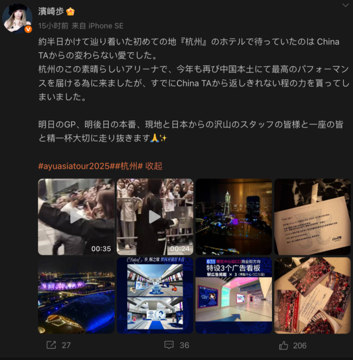 在大莲花隔壁奥体中心体育馆开唱的,是日本歌手滨崎步。