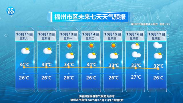 福州被“秋老虎”牢牢掌控午后高温维持34℃上下