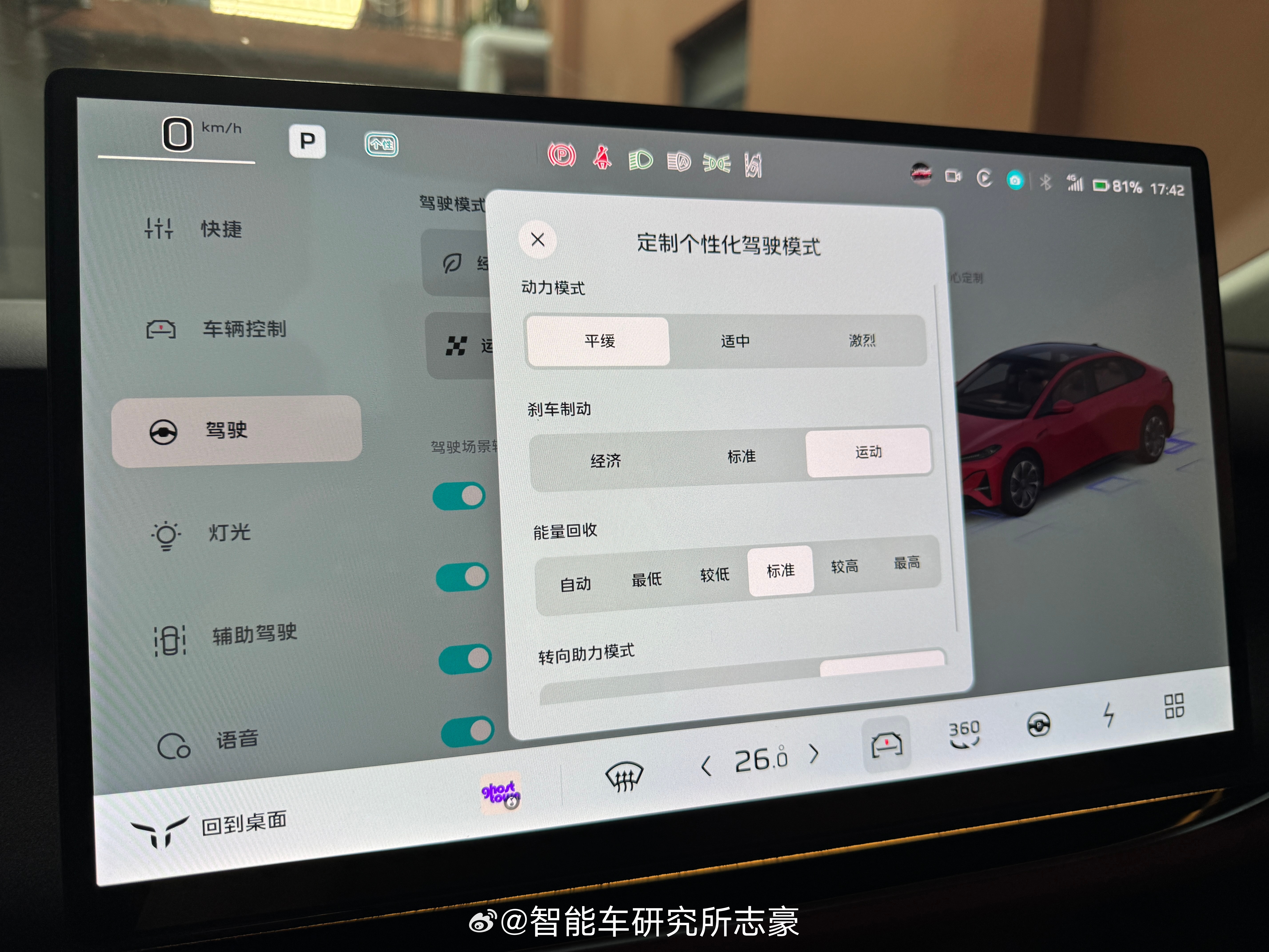 个性驾驶模式,动能回收从过去的三档变成了五档,调节更细腻。
