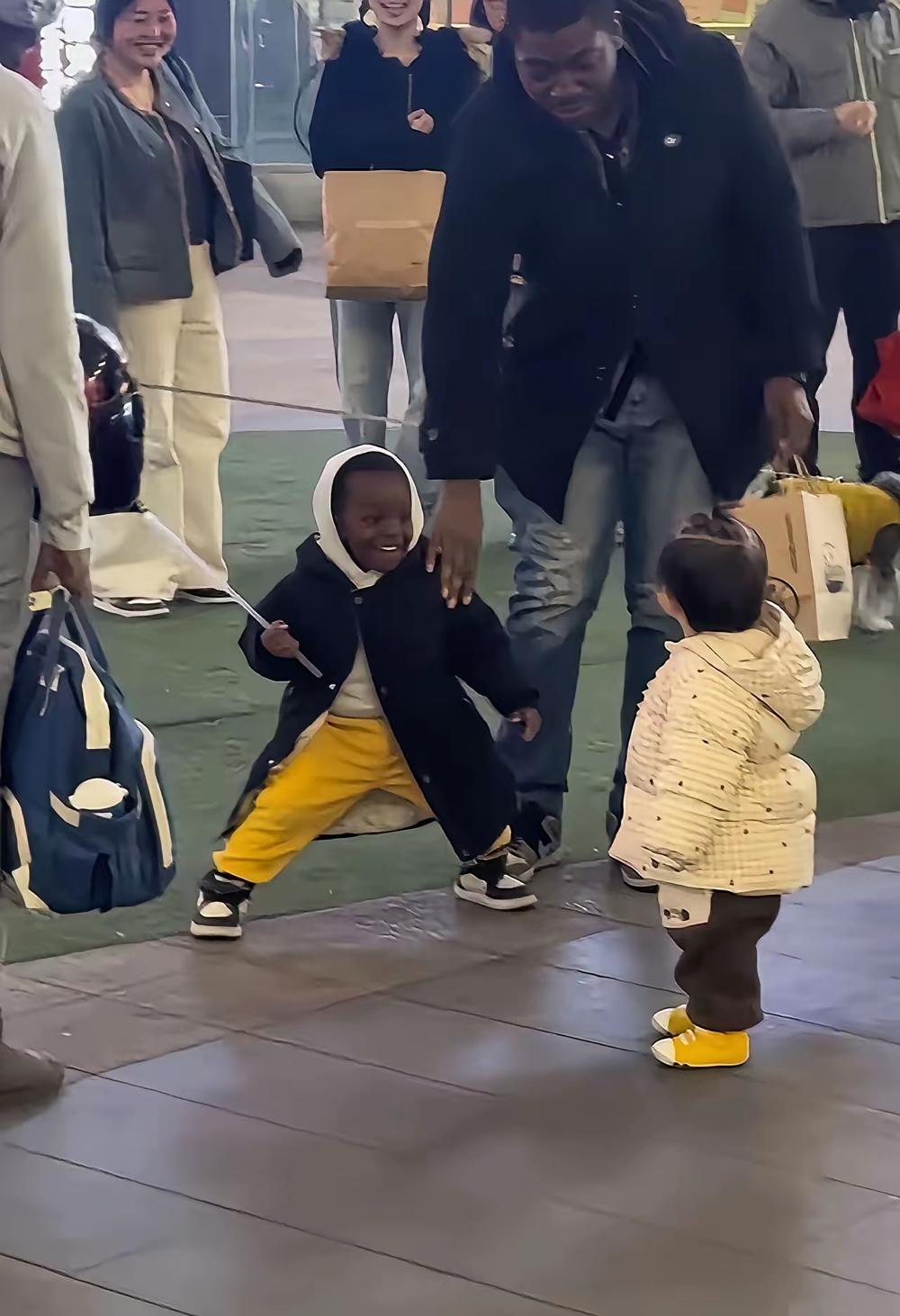 小黑孩天生撩妹的基因不得不服 一个刚会走路的小女孩踉踉跄跄的迈着小碎步在广场上玩,突然眼前一黑,一个黑影走到了她跟前,原来是一个男孩走到女孩跟前,准备跟女孩玩,女孩刚开始一愣,又仔细瞅了瞅,然后扭头转向家长大哭起来,家长安慰她不怕不怕,还在牙牙学语的女孩嘴里蹦出几个字:妈妈,怕,黑,黑