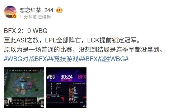 至此ASI之旅,LPL全部阵亡,LCK提前锁定冠军。
