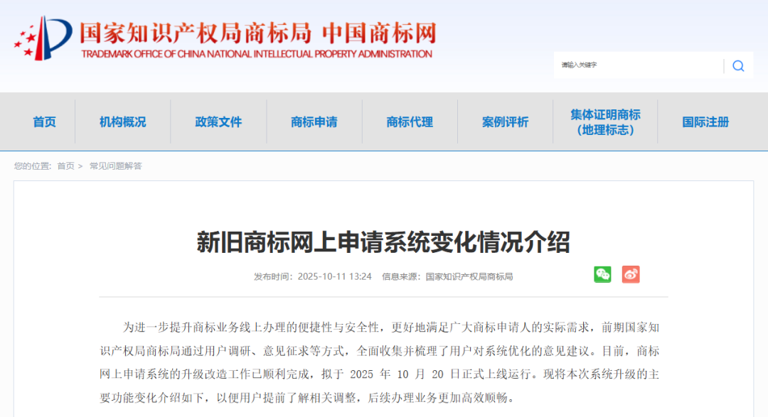 近日,国家知识产权局商标局顺利完成商标网上申请系统的升级改造工作,拟于10月20日正式上线运行。10月11日,商标局在中国商标网发文详细介绍了新旧商标网上申请系统变化情况,并发布了新商标网上申请系统操作视频(见文末相关链接),以便用户提前了解相关调整,更加高效顺畅地办理相关业务。