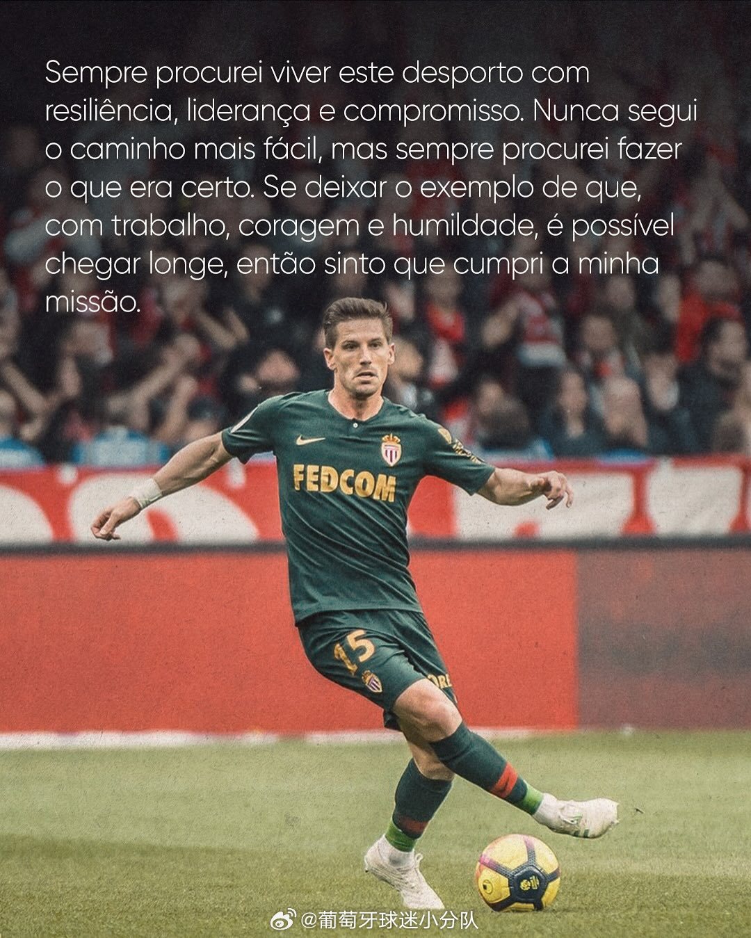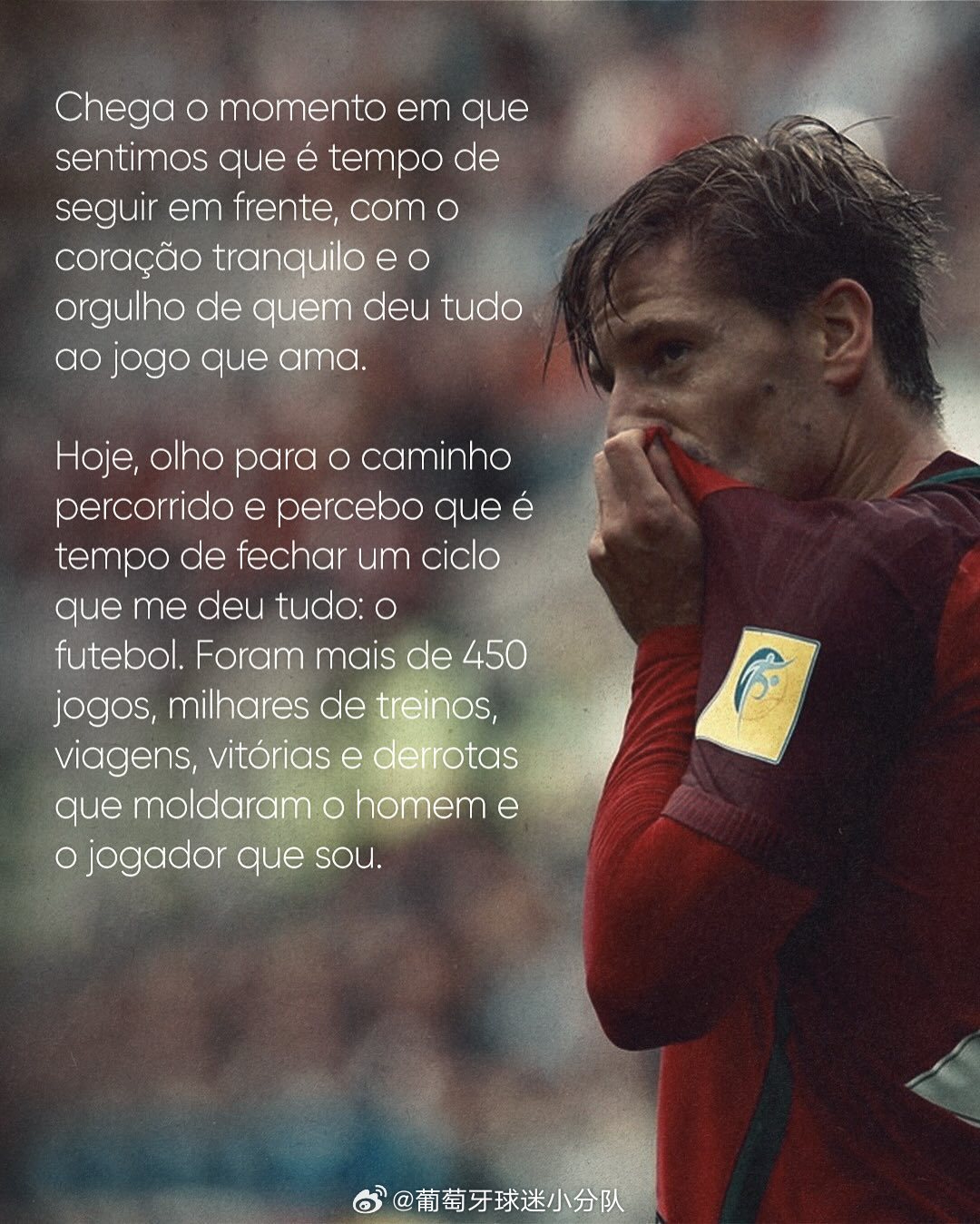 “有时候,我们带着一颗平静的心和那些为他们所热爱的付出一切的人的骄傲,继续前进。今天,我回顾了所走过的道路,意识到是时候告别这个给予我一切的东西了:足球。有450多场比赛、数千次训练、旅途、胜利和失败,塑造了我。