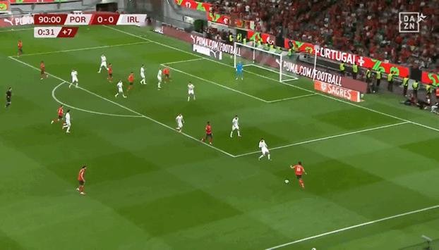 全场比赛结束,葡萄牙1:0爱尔兰,C罗中柱+失点,鲁本·内维斯绝杀,特林康助攻