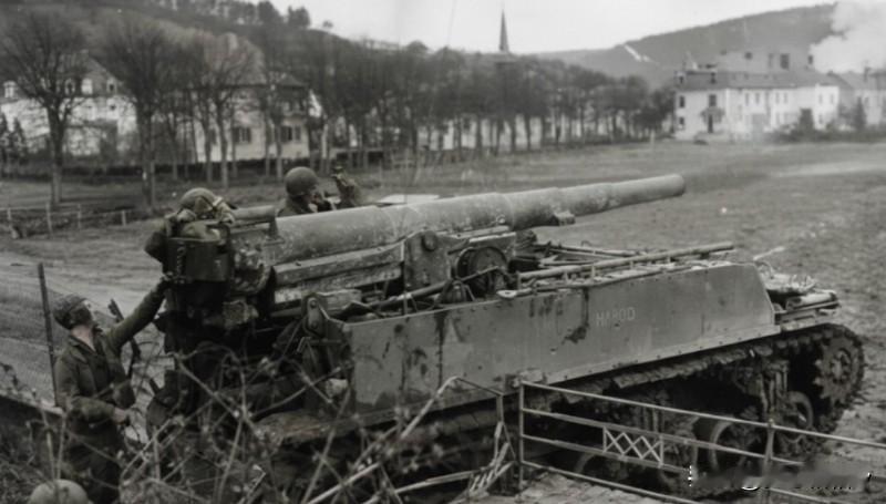 在1914-1918年那场战争当中,花旗国生产了大量的高卢国血统的M-1917/1918型155毫米火炮及其备用炮管,由于当时生产的数量过多,所以在那场战争结束以后,依然还有大量的zM-1917/1918型155毫米火炮备用炮管没有来得及使用只能被放入仓库里储存。 第二次世界大战爆发以后,这批库存的155毫米火炮备用炮管被人想起,为了避免不必要的浪费,花旗国军事工业就用这批库存的155毫米火炮备用炮管和M-3中型坦克的底盘简单组合成了M12型155毫米自行火炮。 具体的说,这种武器并不是用来和对方坦克交战的,而是用来对付德三的各种永备工事的,在战争时期,这种武器被制造了大约100辆,其中大部分在战争结束以后报废,目前仅有一辆留存于世(位于花旗国西尔堡博物馆)。