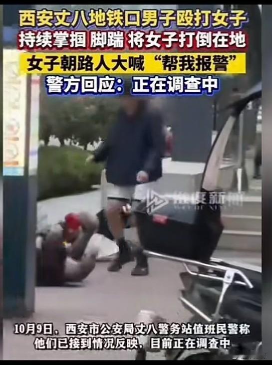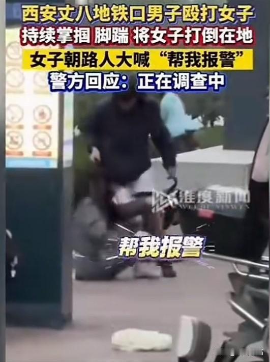 近日西安地铁口男生打女生, 众多路人围观, 无人上前组织男生施暴, 女子大吼男生, 男生用手扶着电动车就开始踹女子, 随手推开电动机车, 追着女子打了起来, 女子只是一味躲闪, 不过还是被男子踹倒在地上, 然后大喊报警,帮我报警, 随后他被男子揪着头发拽了起来, 想想都疼,想必女生除了小时候被家长暴打,还没有被男人这样暴打吧! 还真是暴徒打得太恨了, 不知道两个人什么仇什么怨, 叔叔表示正在调查中, 大家觉得男子为什么会这么疯狂殴打女生? 地铁提速生活 地铁百态 西安生活 西安爆料 地铁女子踹人 地铁踹人