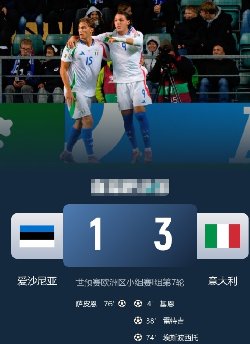 爱沙尼亚1比3意大利 意大利少赛一场落后挪威6分,多纳鲁马离谱脱手致丢球,小基
