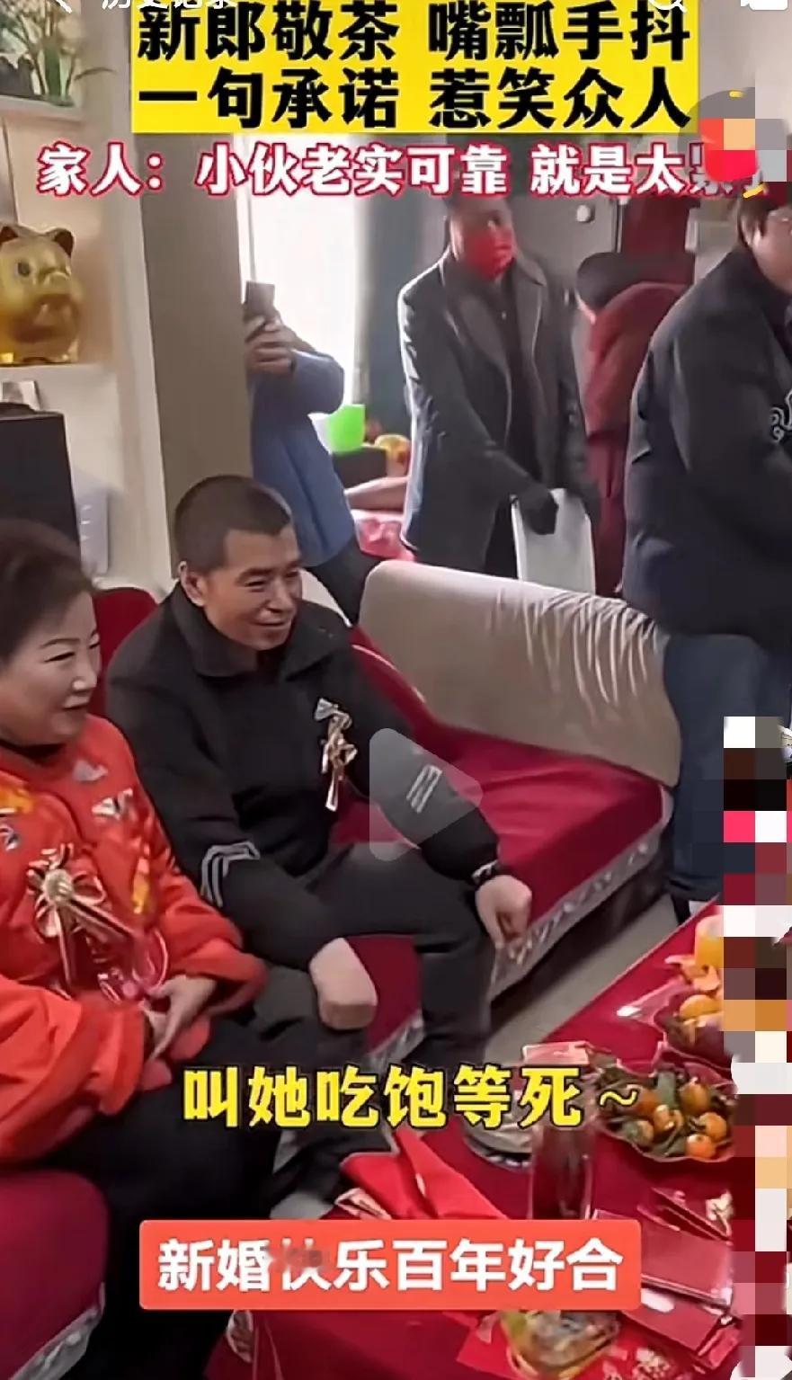 这小伙子结婚,给他紧张的,像是接了个烫手山芋,语无伦次。 可能是平时习惯了,这样说话吧。 老丈人跟丈母娘都哭笑不得。