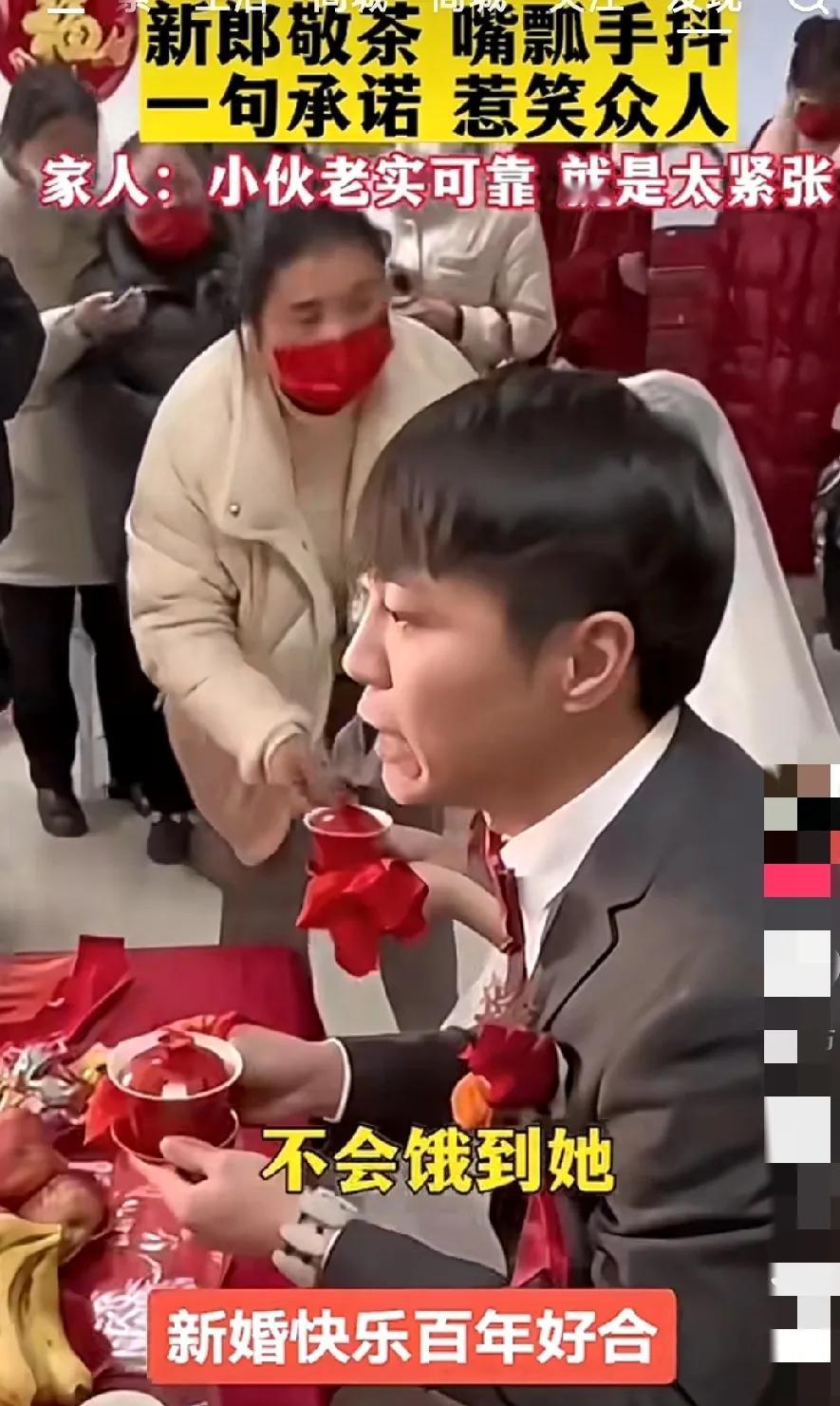 这小伙子结婚,给他紧张的,像是接了个烫手山芋,语无伦次。 可能是平时习惯了,这样