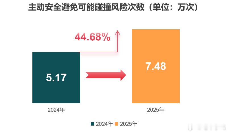 ☆ 图五 主动安全避免可能的碰撞风险次数增长44%,远低于用户规模增长,这说明经过一年的安全教育,大家路上的安全意识、人机共驾意识有了明显提升。