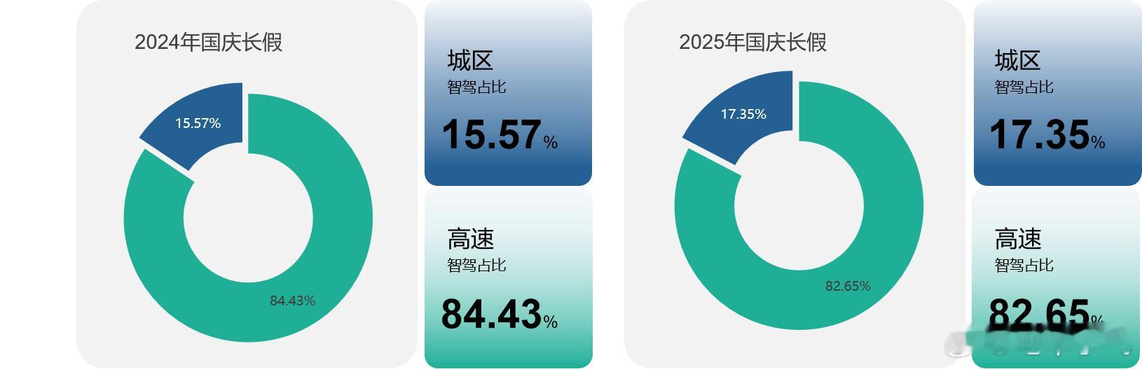 ☆ 图三 高速智驾和城区智驾的比例,去年是84%比16%,今年是82.65%比17.35%,变化幅度很小,这说明长假期间,高速智驾占比80%以上是常态。