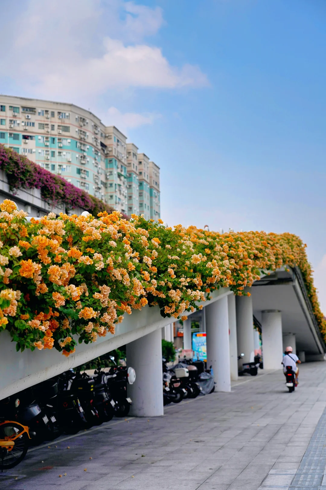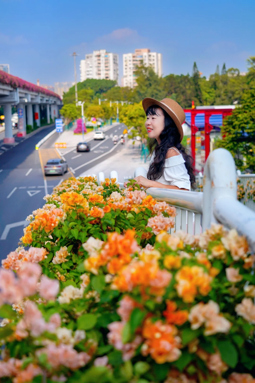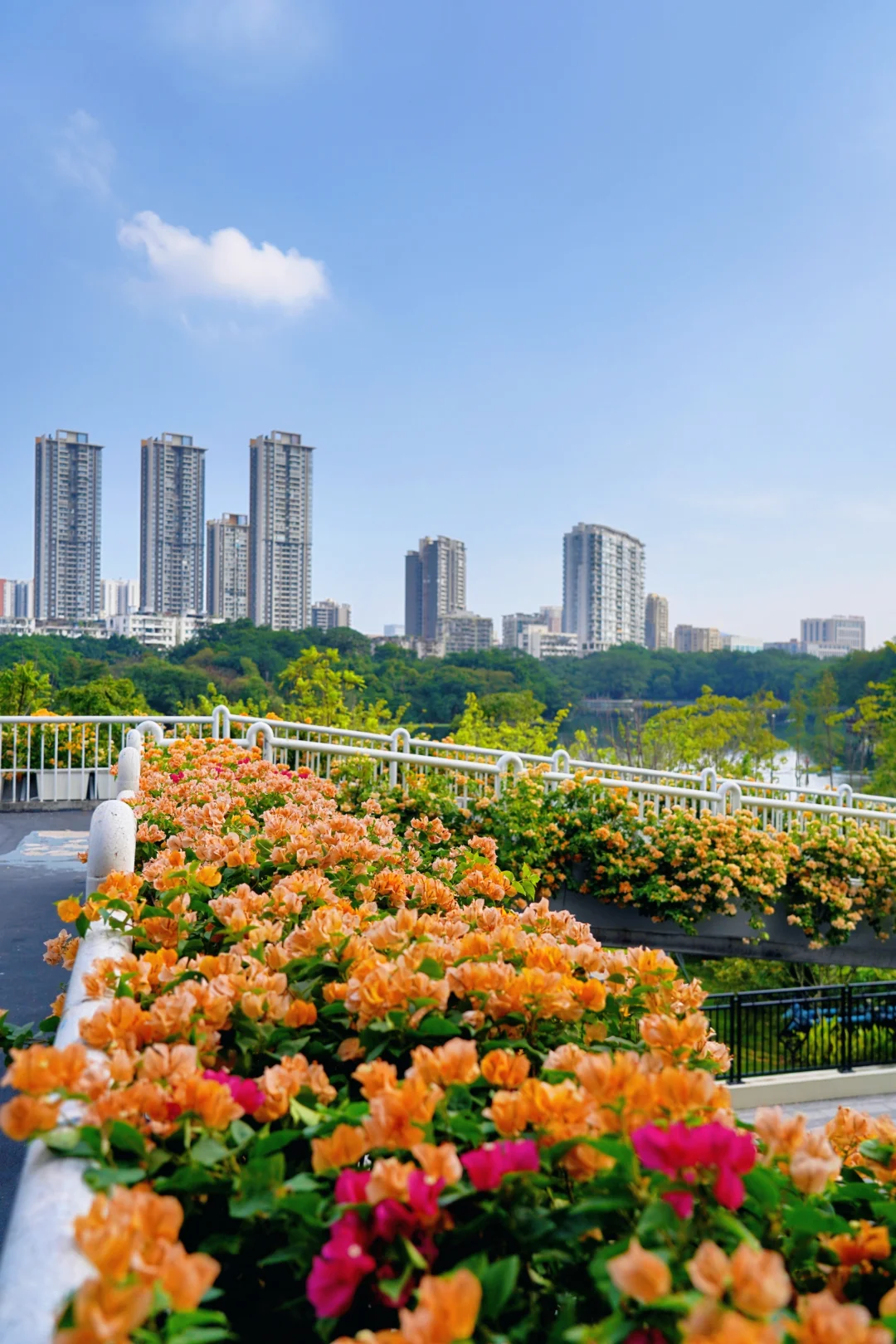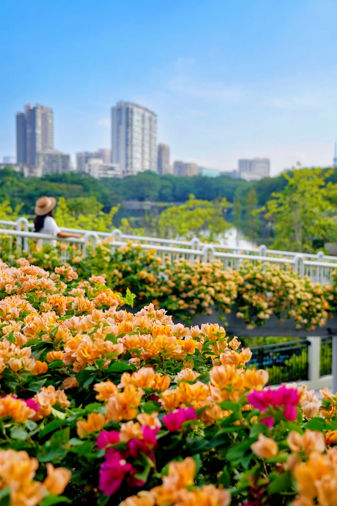 旅游编辑部 不愧是花城广州 随随便便走出个地铁站 就能邂逅一个美得像婚礼现场的鲜花天桥! 微风阳光下花瓣飞舞,很是梦幻! - 广州荔湾彩虹桥🌈地铁站出来就是 这座天桥的黄色三角梅正是盛花期 重点是没人啊!想怎么拍都行~ 照片是今天2025.10.11上午拍的 拍完这里,就能沿着湖畔栈道去流花湖玩了 - 🚇地铁:8/11号线彩虹桥地铁站,出站就是 📸附近景点:流花湖公园