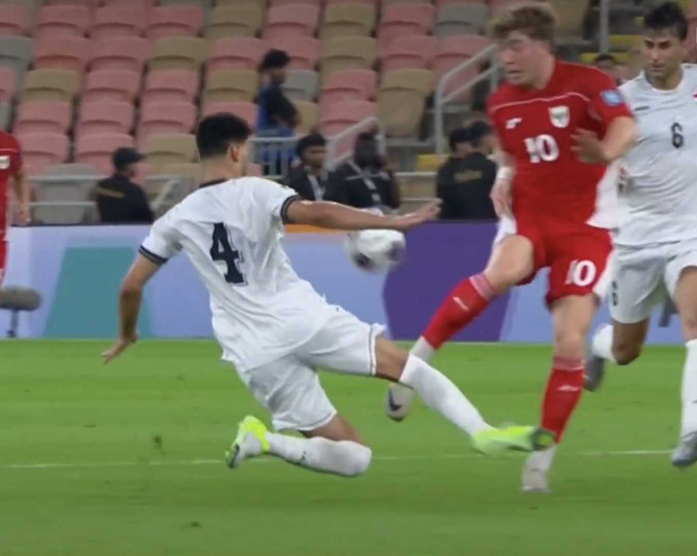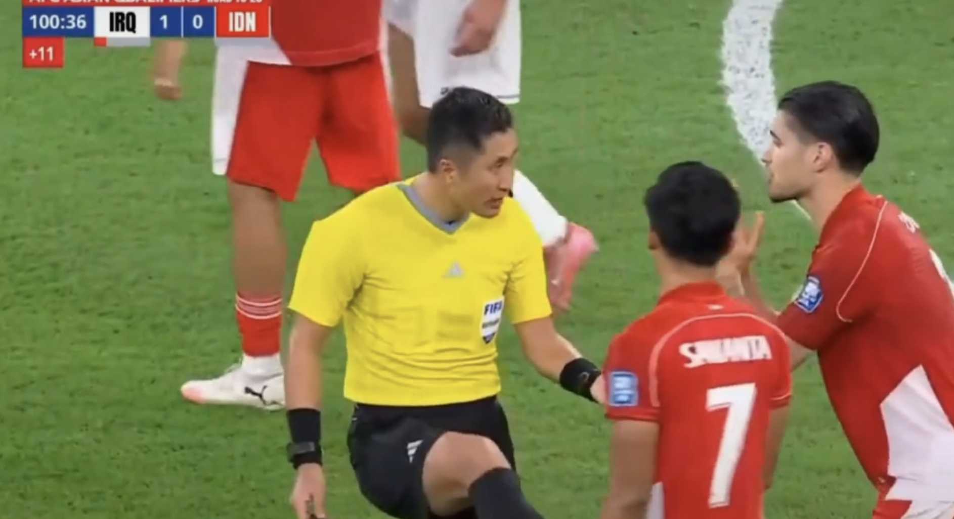 比赛第66分钟,印尼队在快速反击中,由前锋罗梅尼带球高速突破,在即将形成单刀之前,伊拉克队作为最后一名防守球员的塔赫辛将罗梅尼铲倒,但马宁之只向塔赫辛出示了黄牌,印尼队要求马宁复核并按规则改判红牌,但遭到拒绝。