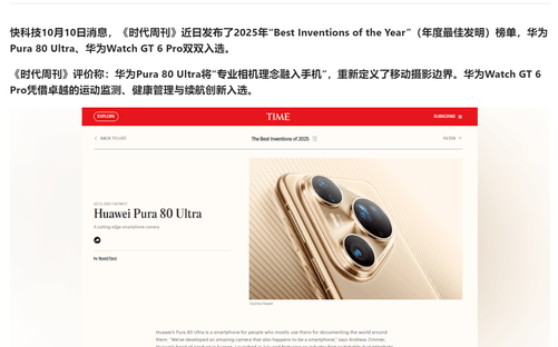 而HUAWEIPura80系列则延续了华为在人像与夜景影像上的强势传统,全新AI超感知影像系统能精准识别光影关系,让每一次按下快门都成为艺术创作。HUAWEIPura80Ultra更凭借将“专业相机理念融入手机”,重新定义移动摄影边界的突破性表现,入选《时代周刊》2025年度最佳发明榜单。