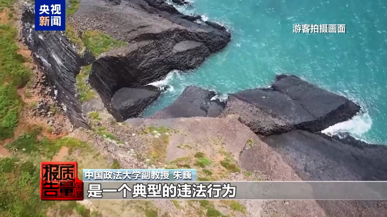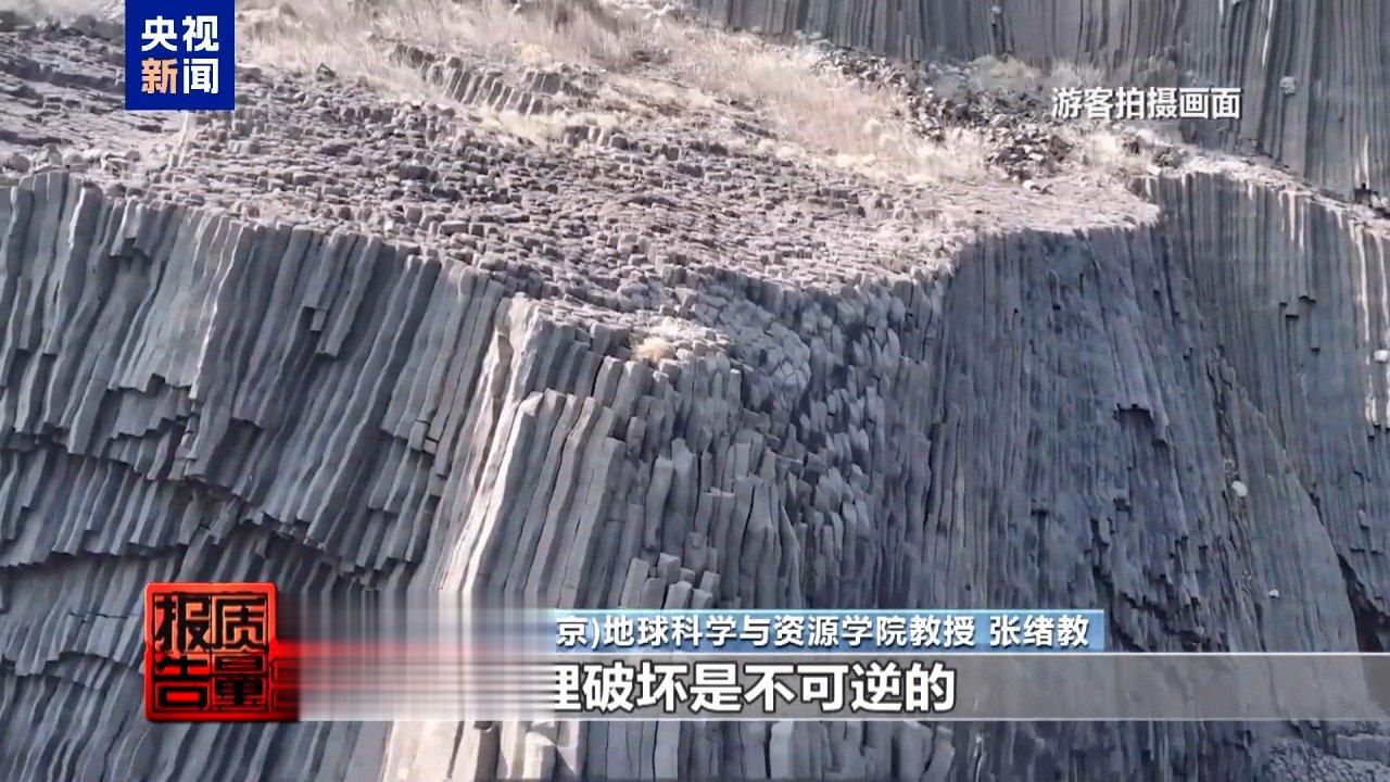 中国地质大学(北京)地球科学与资源学院教授张绪教:游客上岛以后,他们攀爬到柱状节理上边,对柱状玄武岩造成破坏,这种物理破坏是不可逆的。