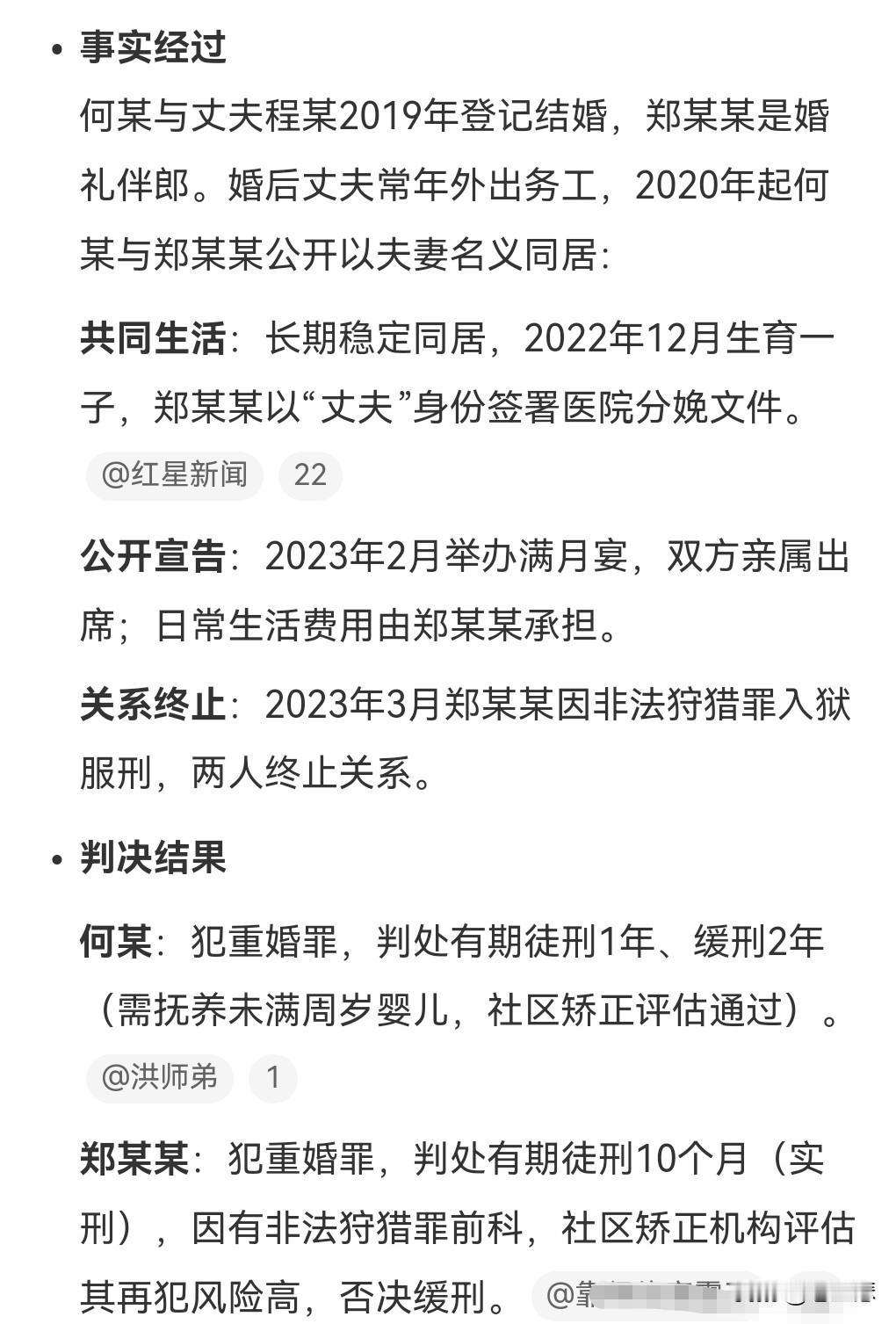 究竟是人性的泯灭,还是道德的沦丧?这真的是太不地道了。 10月12日(发布),女子婚内出轨伴郎以夫妻名义同居生子。 这真的是太扎心了,女子的丈夫常年在外务工,女子寂寞难耐竟然和伴郎好上了。 这伴郎太不地道了。 二人居然以夫妻身份同居并生子。 并且还公开为孩子办满月酒。 这也太嚣张了吧。 最后女子被判缓刑,男子被判有期徒刑10个月。 因为男子还有一个非法狩猎罪,认为这个伴郎再犯的风险高,所以是实刑。 不过这两人也已经感情到头了。
