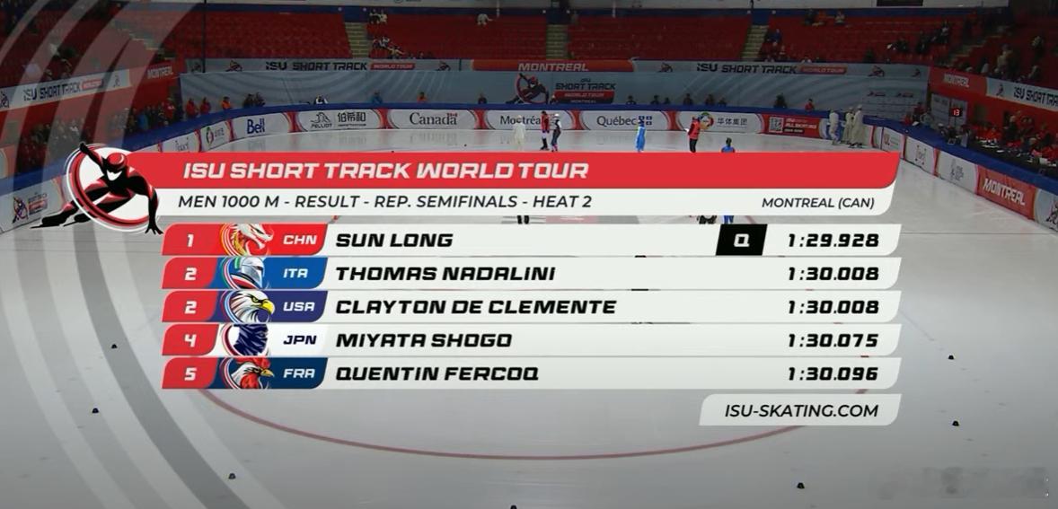 10月12日晚,202526赛季短道速滑世界巡回赛第一站-蒙特利尔站结束了男子1000米复活赛争夺,中国选手孙龙连续闯过复活赛四分之一决赛和半决赛两关,强势杀入四分之一决赛。