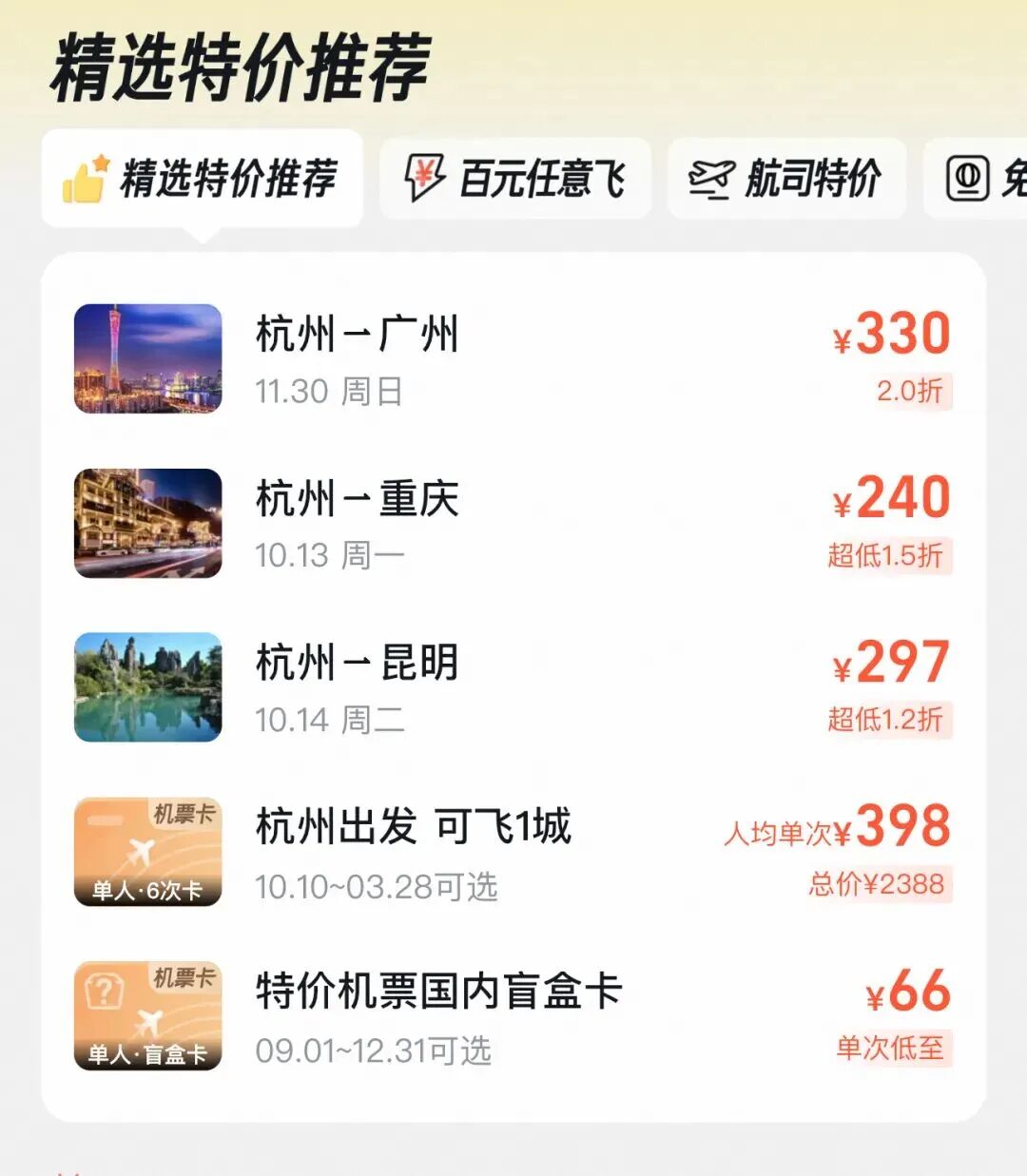 甚至还有66元的机票盲盒
