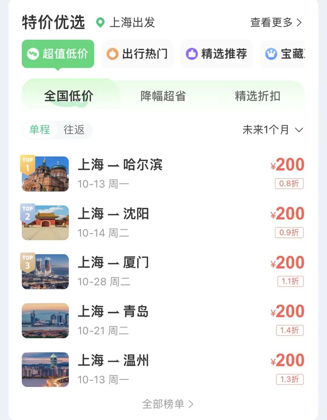 不少航线低至1~2折