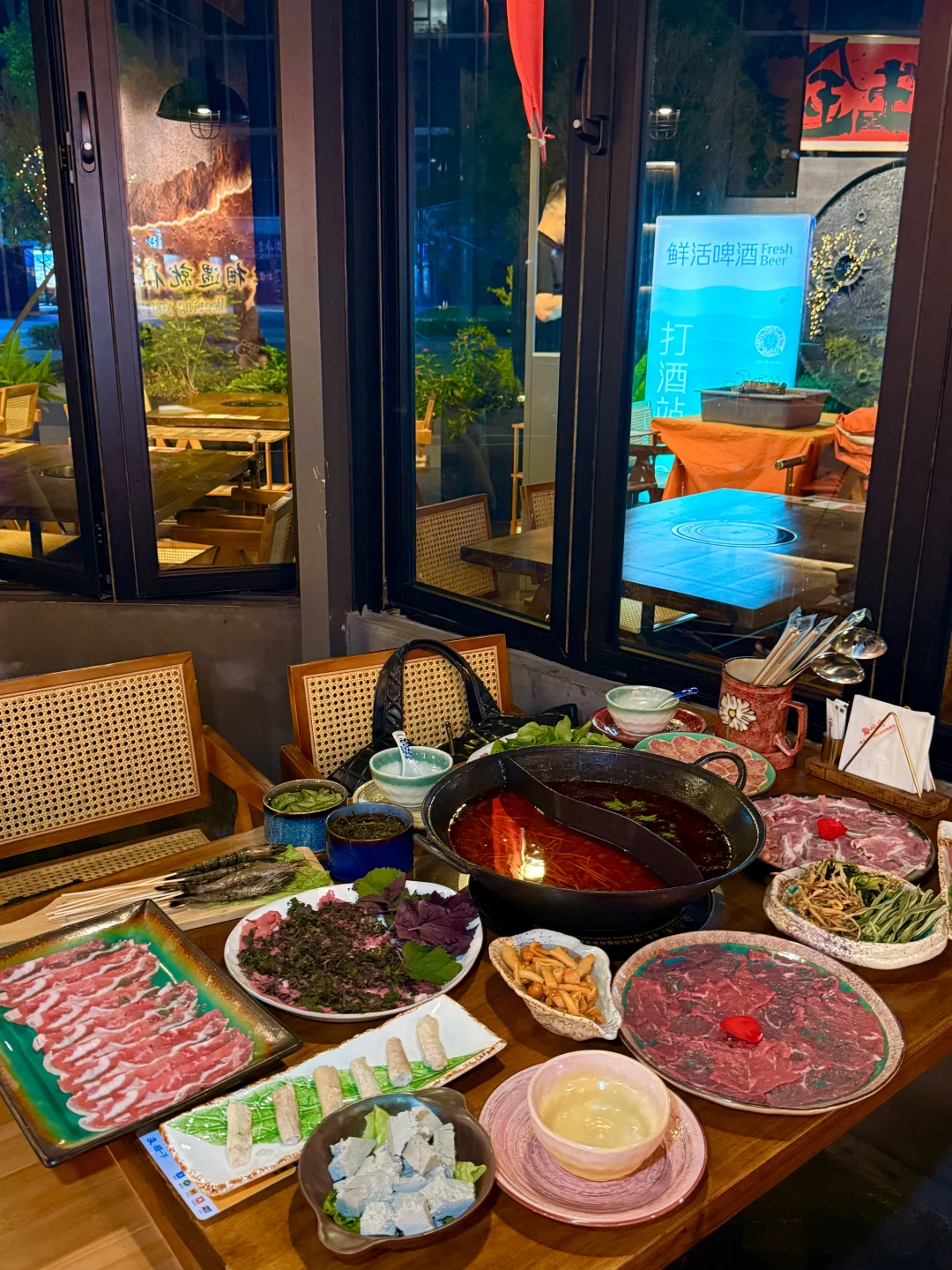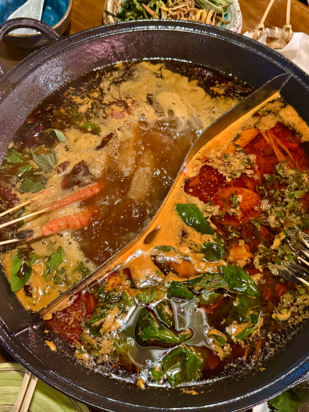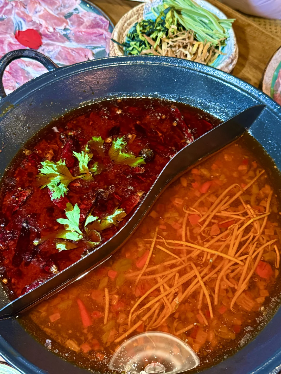 最近天气慢慢转凉 又到我最爱的火锅季噜 姐妹刚从贵州回来一直给我安利酸汤锅 真给我馋晕了🥲🥹🥘 这家的锅底竟然还是现炒的! 姐妹说酸汤味儿和贵州吃到的一模一样 牛油锅会有点偏辣🌶️🔥 肉肉品质都不错 鲜吊龙 罗勒牛肉等都很鲜美~ 各种蔬菜也很nice 五彩土豆很神了🥔 晚上还有驻唱喔~🎤一边火锅一边喝酒还能听歌 也是很惬意噜
