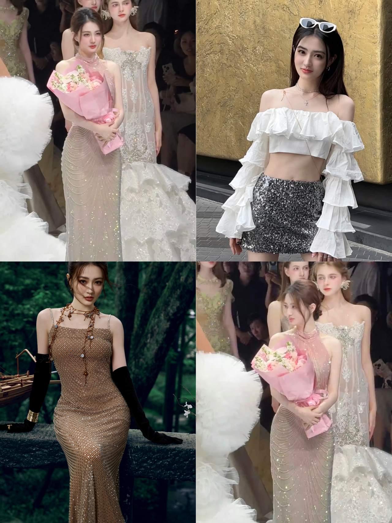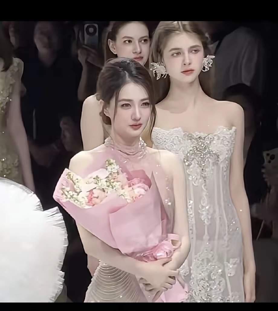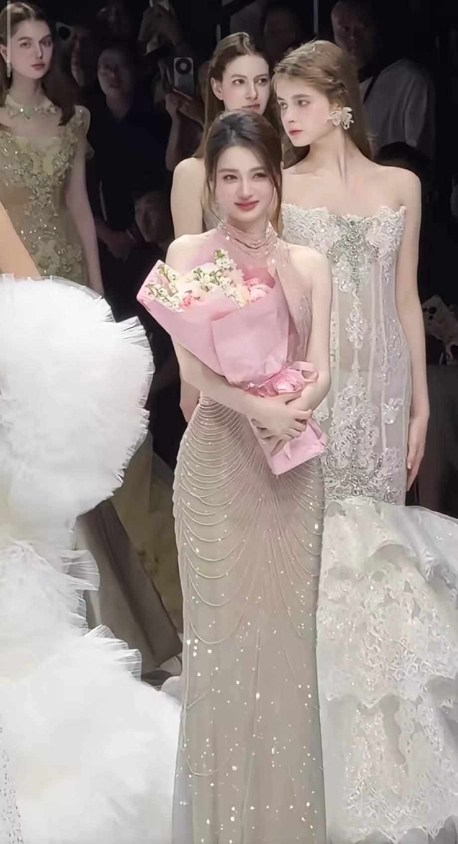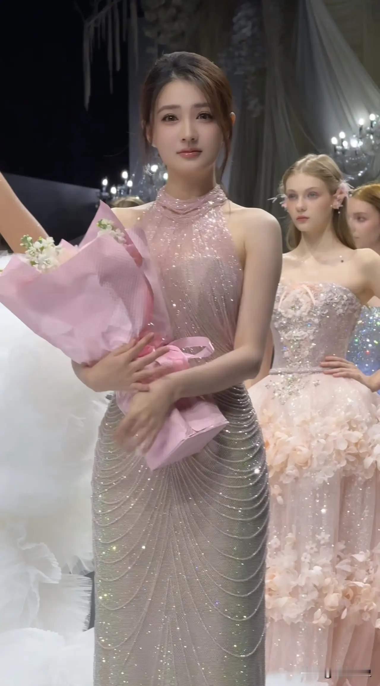 一眼万年, 粉粉嫩嫩的徐露上海时装周美炸了, 害羞中夹着落落大方, 微笑中隐藏着神秘感, 模特不过如此, 太美了, 一副岁月静好, 国色天香的模样。 美得令人心动, 是什么男人以后有这样福气, 要朝哪个方向拜, 才能遇到这样的美娇娘。 上海秀场