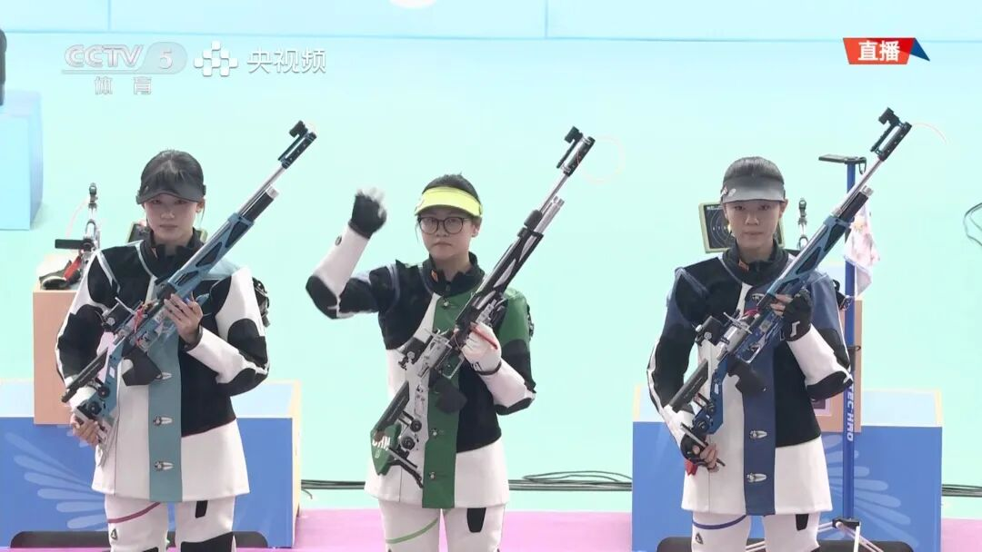 在当天进行的女子10米气步枪团体资格赛中,由韩佳予、黄雨婷和王子菲组成的浙江队“梦幻阵容”以总环数1903.6环的成绩位列第一位,这一成绩还打破了全国纪录。该项目决赛将于10月14日12:00进行,三位浙江姑娘也将向金牌发起冲击。