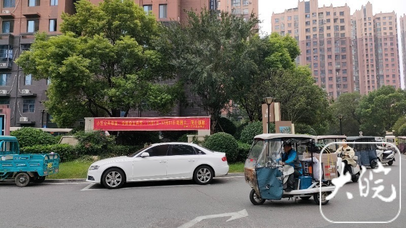 10月12日,记者来到阜阳市丽丰一品小区,从北门一走进小区就可以看到对面红色条幅:小区公共收益,全体业主共享。走在小区内,记者看到多个地方都已挂了这种让业主领红包的条幅,在东门口附近一条幅上写着:丽丰一品小区业主委会发放公共收益,每户50元。