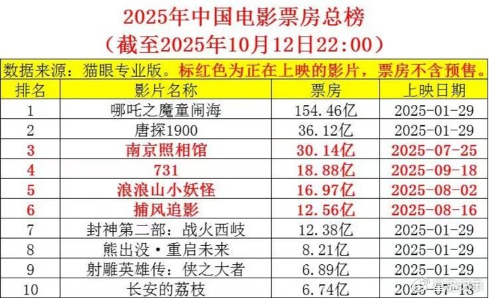 灯塔专业版显示,截至10月12日晚22点,2025年中国电影总票房达439.1亿元,已超过去年全年水平,但展望第四季度电影市场,李璐和张磊均认为冲击500亿元大关仍有一定难度。