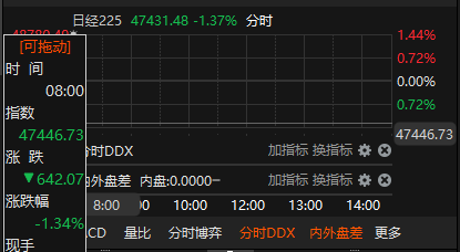 上证报中国证券网讯10月14日开盘,日韩股市表现分化。日经225指数开盘跌1.34%,报47446.73点;韩国综合指数涨0.55%,报3604.12点。