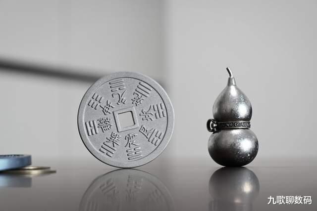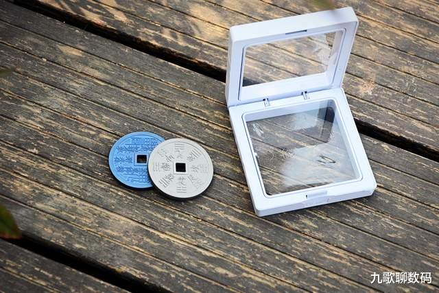 最后再来让我们看下山鬼花钱吧,也就是俗称的“厌胜钱”。其实之前给大家分享过,但那是普通款,今天要体验的则是它家的CNC钛合金精工版,磨砂原色,做工更精致,字体更清晰。它是由高纯度(99.8%)的TC4纯钛所打造,既抗腐蚀又抑霉菌,长久盘玩也不会出现锈迹、霉污等情况。重量上则只有14.5克,完全可以贴身携带,日常把玩。