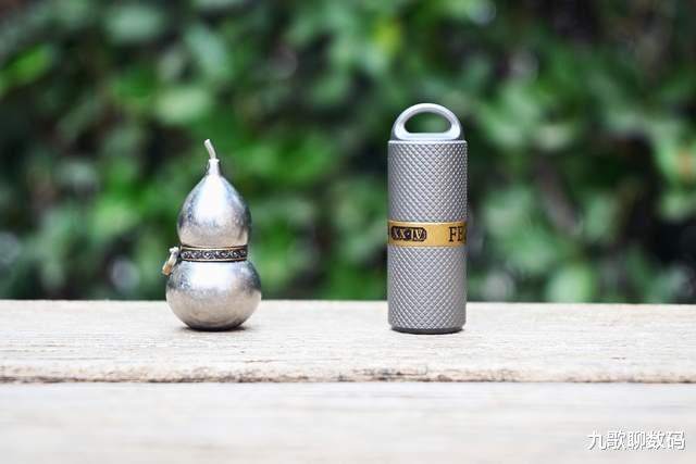先来看下新款的钛镶铜迷你葫芦打火机吧,印象中费戈出过好几款钛合金打火机,或斜纹、或枪匣的硬朗外观让人印象深刻。钛镶铜的迷你款也有,圆柱状的胶囊造型可以挂在钥匙扣上随身使用。不过今天要分享的这款采用了宝葫芦的样式,更新颖别致,超袖珍的体型兼具实用与把玩。