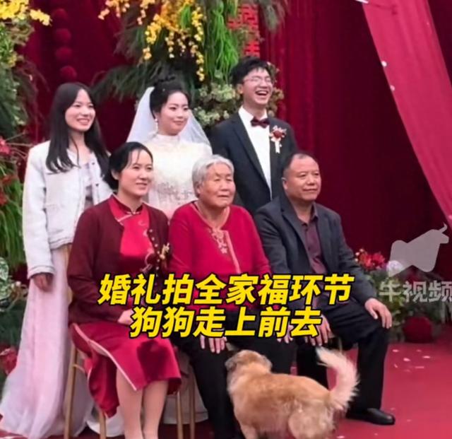 婚礼上照全家福,狗狗突然上前找位置,新郎发现后抱着狗狗入镜,网友:小小举动说明新郎值得依靠