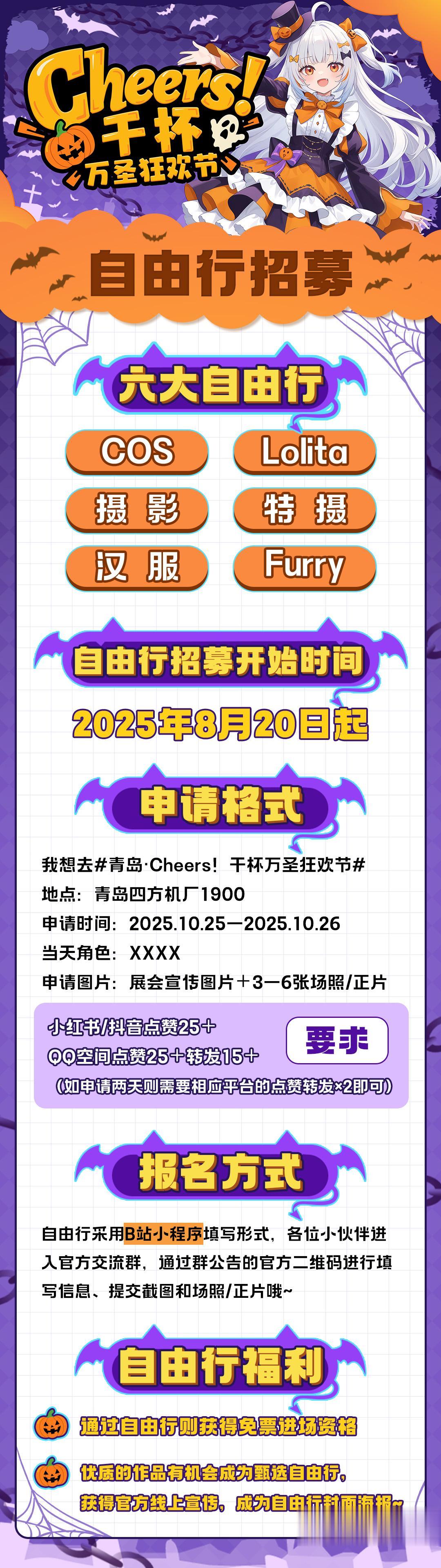 之前的少放了两张图片😢😢重新发一下。二次元 自由行 点赞 cos 我想去青岛·Cheers!干杯万圣狂欢节 地点:青岛四方机厂1900 申请时间:2025.10.25-2025.10.26 当天角色:瓦蕾莎 申请图片:展会宣传图片+3-6张场照/正片