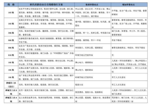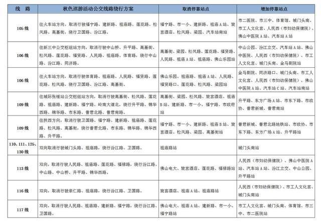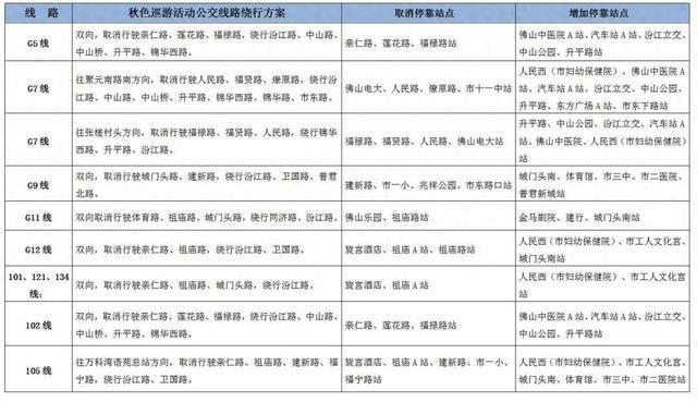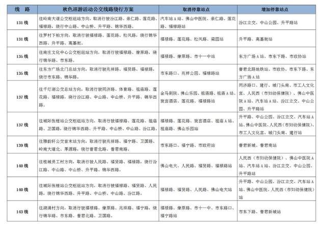 10月17日19时30分,佛山市禅城区将举行秋色大巡游活动,期间将对巡游活动周边道路适时采取交通管制。受此影响,佛山市禅城区公交G5、101、137、206等48条公交线路需临时绕道行驶。