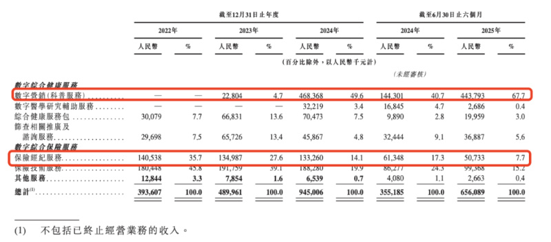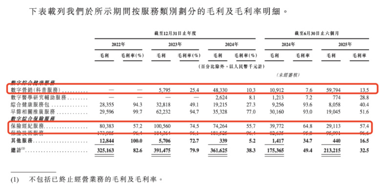 业绩波动主要源于营收结构的根本性改变。《星岛》记者从招股书了解到,线上众筹业务剥离前,轻松健康集团的营收主要来自数字综合保险服务,即为保险公司销售保险产品的保险经纪服务,而剥离后,公司主营业务变为数字营销(科普服务)。2024年,前者毛利率约为64.8%,但后者的毛利率却只有7.6%,有逾8倍的悬殊差距。