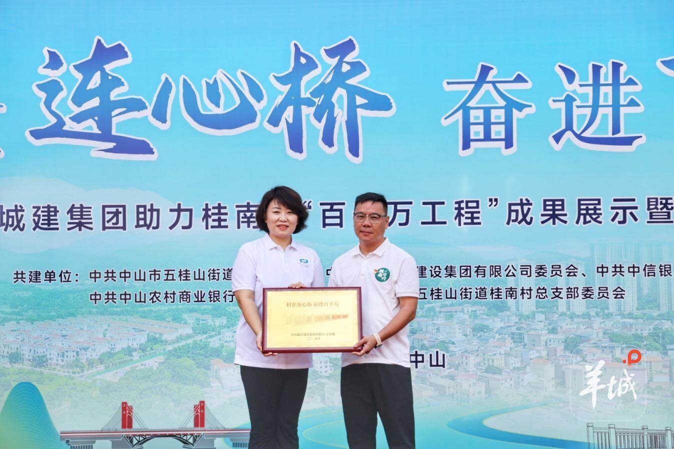 在“乡村振兴・一桥通民心”移交仪式上,中山城建集团将象征村企深厚情谊的“连心桥”移交牌匾,郑重交付给桂南村代表。