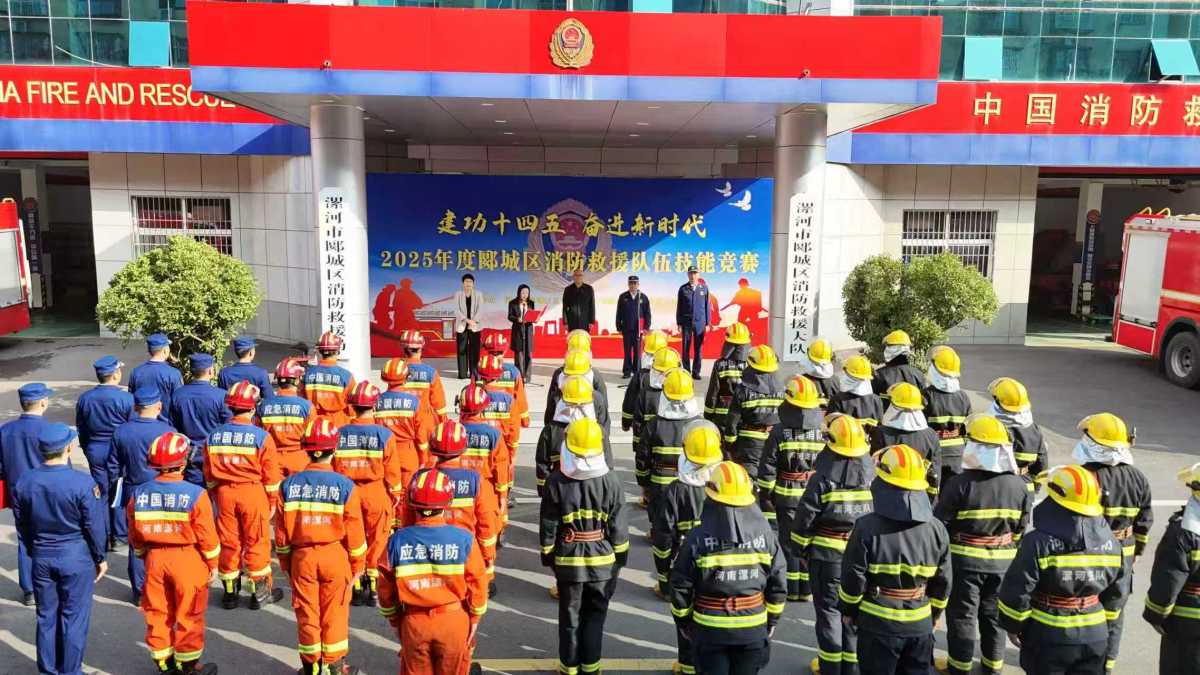 2025年10月14日,由漯河市郾城区总工会、郾城区消防救援大队联合举办的“2025年度全区消防救援队伍技能竞赛”在区消防救援大队训练场正式拉开战幕。市总工会、市消防救援支队、区总工会及区消防救援大队相关负责同志出席开幕式。来自区消防救援大队5个建制班及5支乡镇专职消防救援队的参赛队员齐聚赛场,展开了一场力量、速度与技能的全面较量。