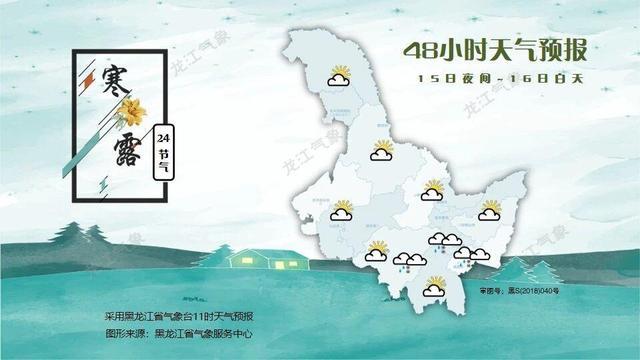 15日白天:齐齐哈尔南部、大庆、绥化南部、哈尔滨、七台河、鸡西西部、牡丹江多云有阵雨或雨夹雪,其他地区多云。