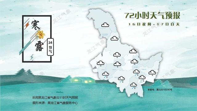 16日夜间到17日白天:大庆南部、绥化南部、哈尔滨、佳木斯南部、七台河、鸡西西部、牡丹江多云有阵雨或雨夹雪,大兴安岭、黑河北部、伊春北部多云,其他地区多云有阵雪。