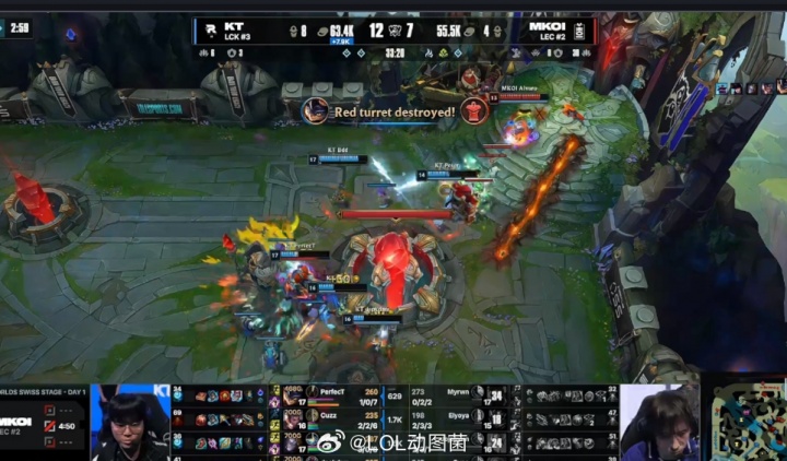 直播吧10月15日讯在今日的S15全球总决赛瑞士轮比赛上,KT在前中期落后的情况下三波团战完成翻盘,成功晋级1-0组!