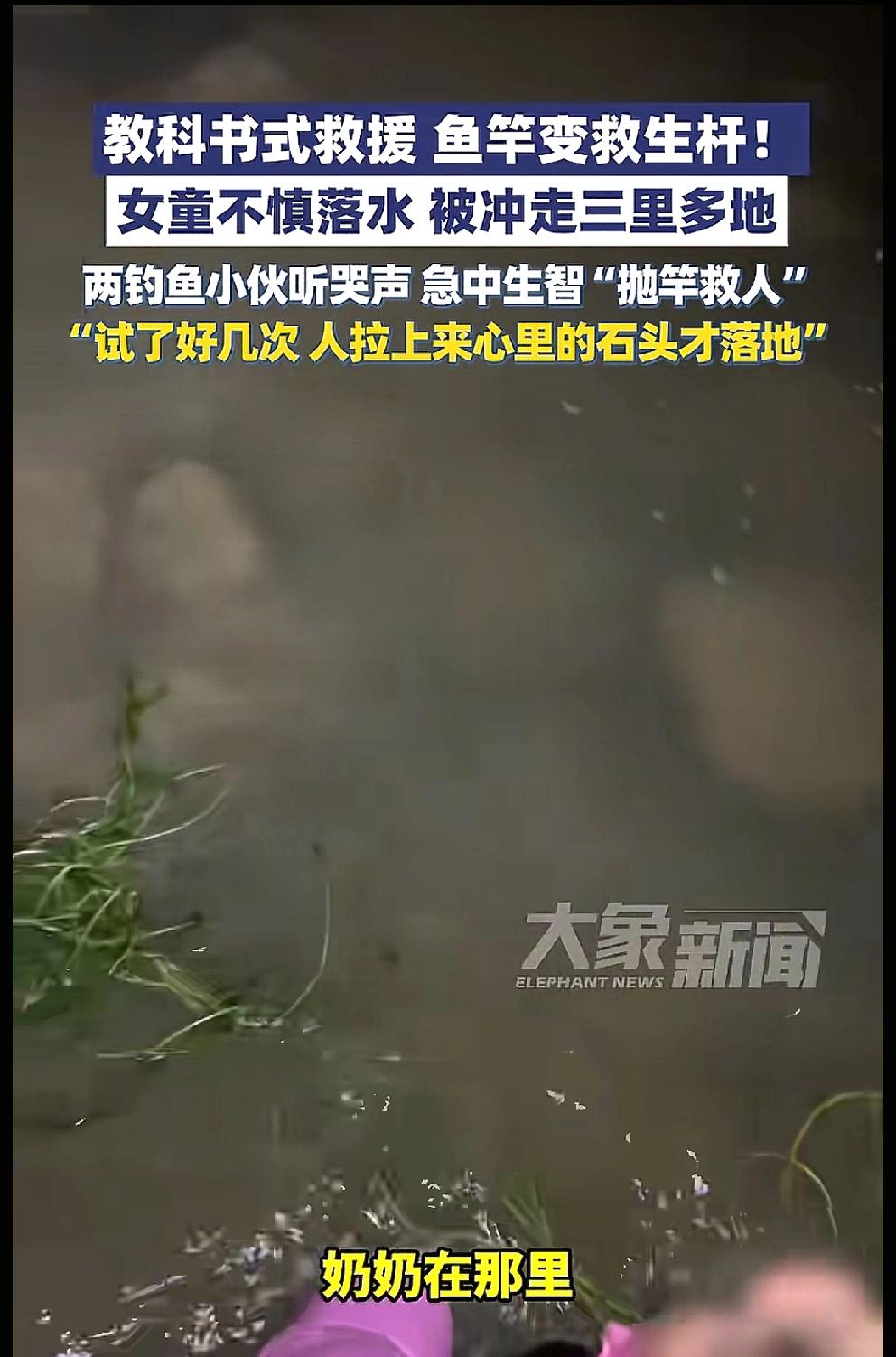祖父母带着姐弟二人在过桥意外落水, 一不留神,小姑娘转眼被河水冲出去,一眨眼,就消失不见。 小姑娘在刺骨的河水中挣扎漂浮了三里多地,眼看就要支撑不住。 危急时刻,两位正在夜钓的年轻人察觉河中有异,他们没有贸然下水,而是果断伸出鱼竿,用竿稍精准勾住女孩衣角,合力将她拖回岸上。 女孩浑身湿透、嘴唇发紫,刚缓过气就带着哭腔拉住救命恩人:“奶奶和弟弟也掉进去了…快救救他们!” 直到这时大家才意识到,这竟是一场接连发生的意外。 很显然,危险尚未解除,仍有生命等待搜寻。小伙立即拨打急救电话,希望专业力量能争分夺秒创造更多生机。 “机智的夜钓青年”,凭一根纤细鱼竿,在黑漆漆的河道上,硬是从死亡边缘拉回一条小生命,也牵出了一场更紧迫的接力救援。 往常多见奋不顾身跳水救人的场景,这回目睹“以竿代舟、稳准相济”的现场处置,确实值得称道。 网友评论:孩子这么小遇事却不忘家人,实在让人心疼。家长带娃真的一刻都不能大意,水域边尤其危险。 救援方式也给我们提了个醒:见义勇为也要讲究方法,盲目跳水可能造成更多险情。为沉着机智的小伙子点赞! 生命安全无小事,无论是游玩还是作业,多一分警惕,就少十分危险。