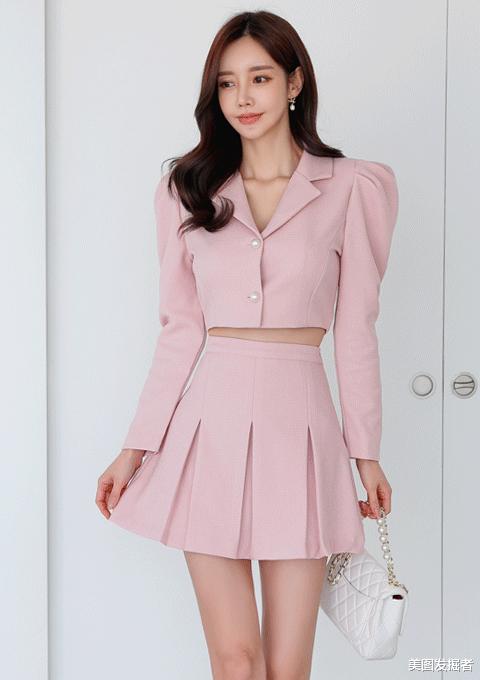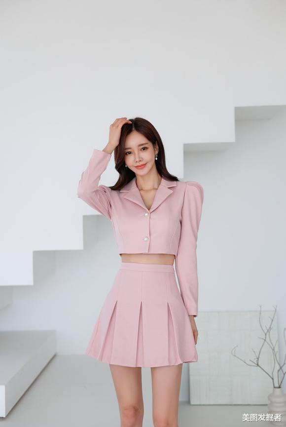孙允珠迷人穿搭:粉嫩彩虹东欧夏梦晚樱西装裙