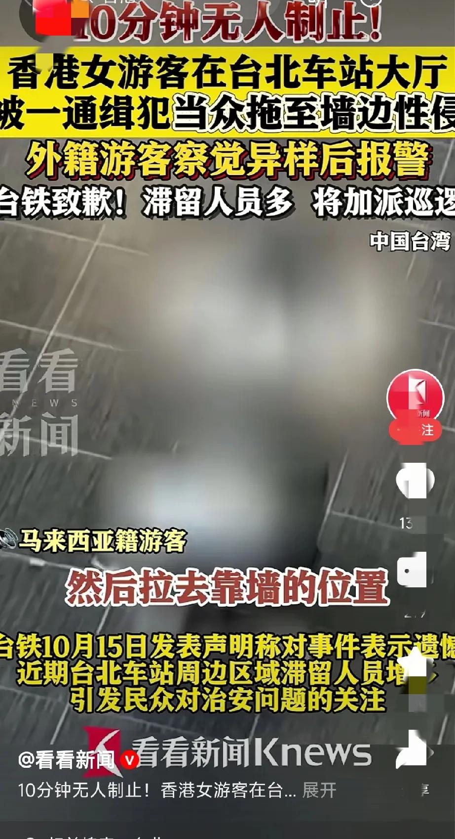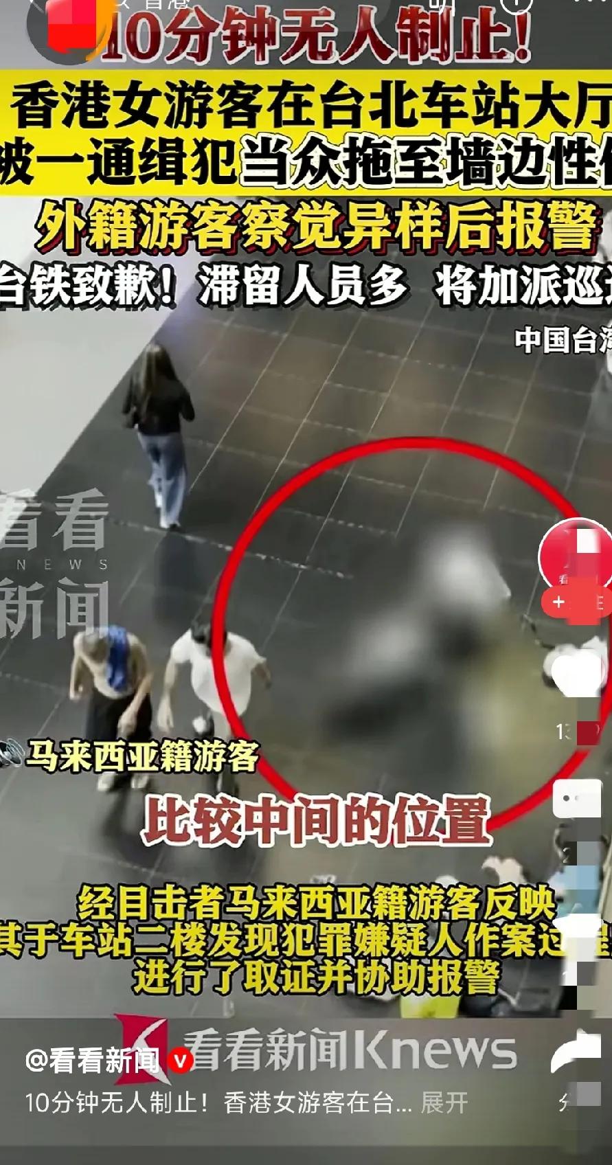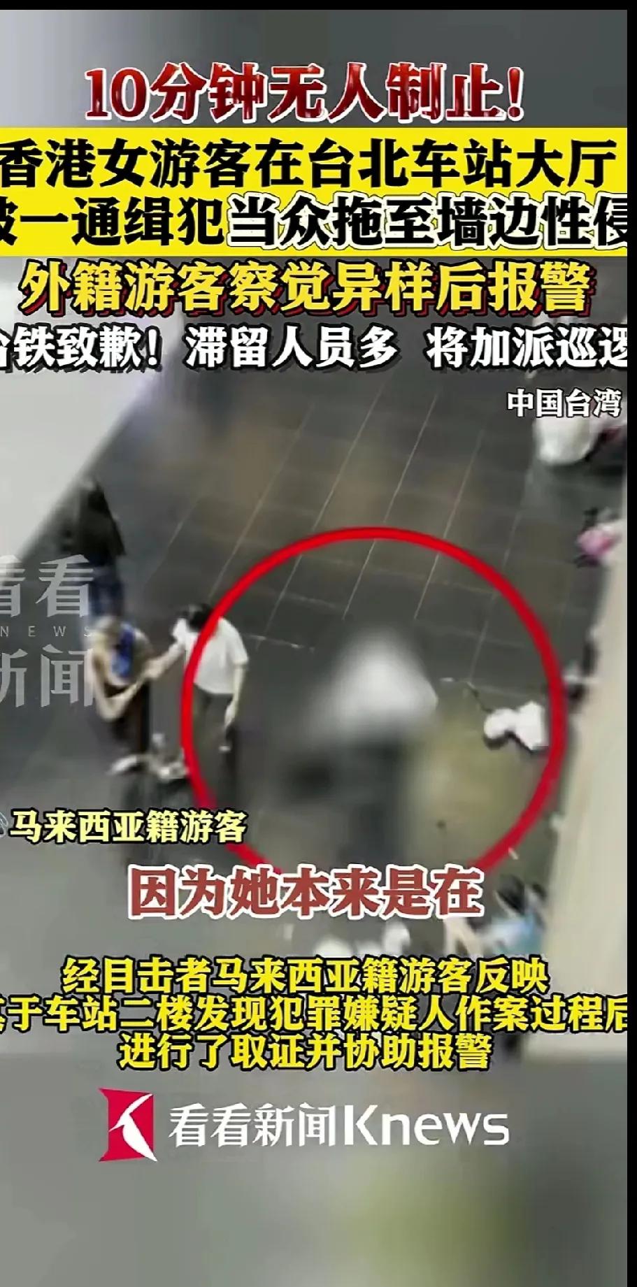 女人本来是坐在大厅中间的位置,只因为有点昏迷状态,男子竟然当众把女人,拖到靠墙的位置性侵。 而且该男子还是通缉犯,在众目睽睽之下,他竟然还敢肆无忌惮的犯罪,车站人来人往,也无人阻止。太冷漠了。 还是一个外国籍游客,发现不对劲报的警。 如果没有人报警,这样的事是不是还会发生。 旁观者的冷漠无视,一副与自己无关的心态,更会助长不法分子屡次犯罪。